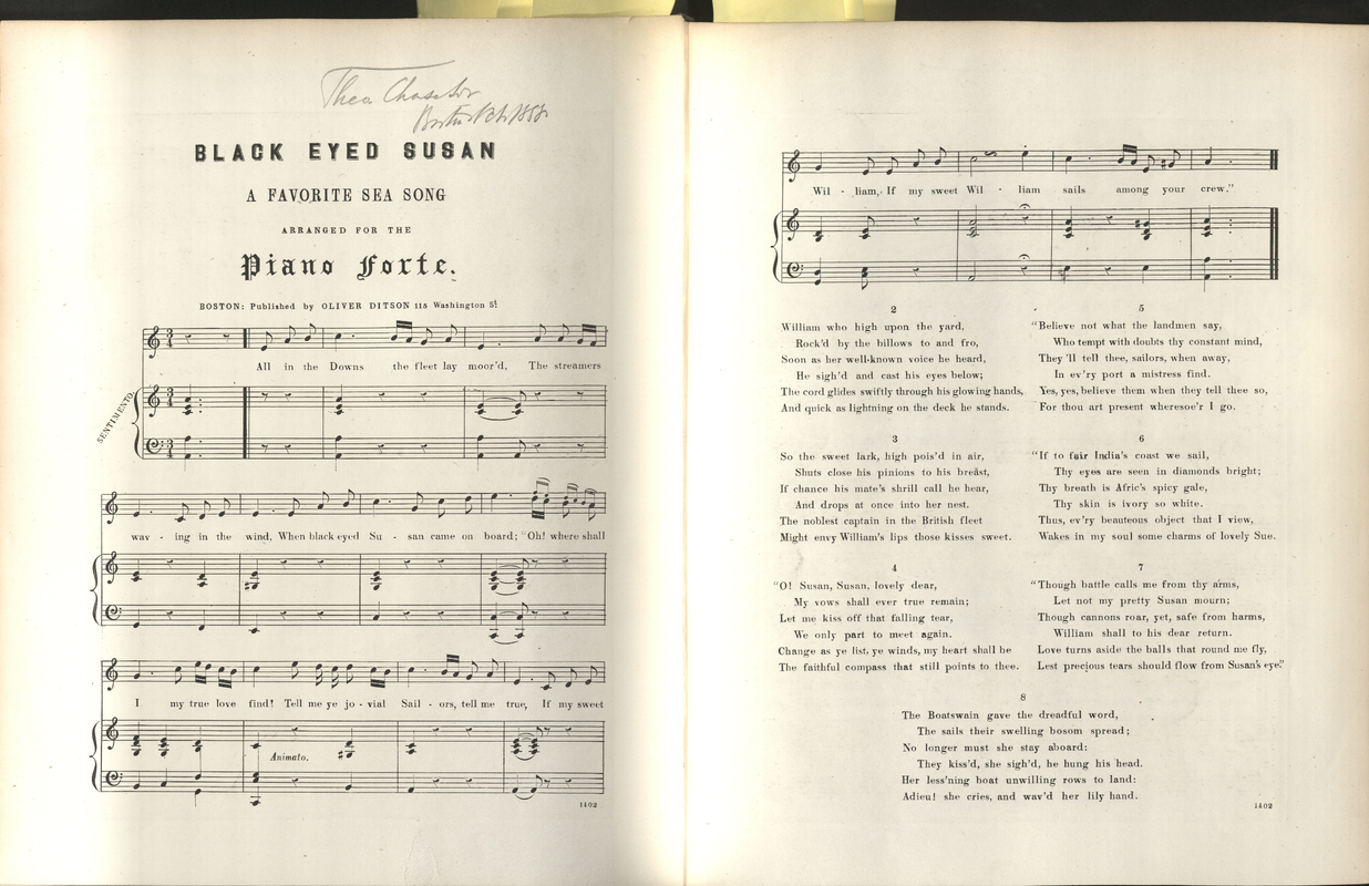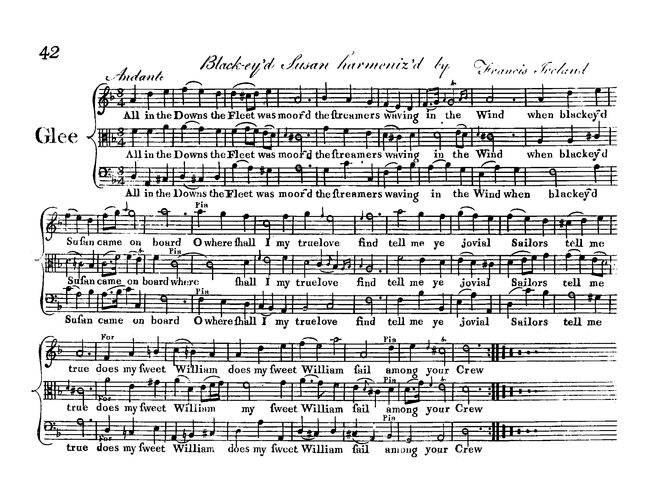 Black Eyed Susan, A Favorite Sea Song; All in the Downs; Thus when the swallow seeking prey; Cape Clear; O! Sweet Adare; O! At-Dara Aoibinn