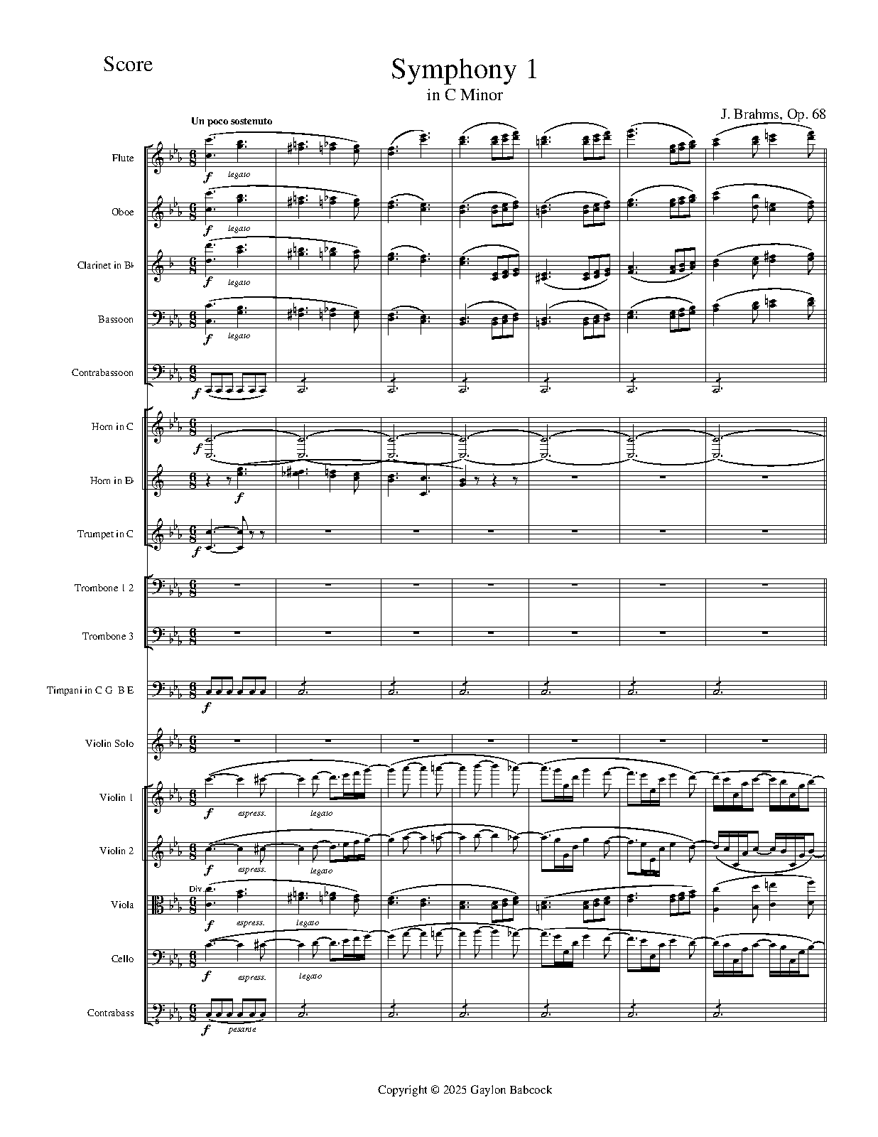 23 more: Flute 2 • Oboe 1 • Oboe 2 • Clarinet 1 (B♭/A) • Clarinet 2 (B♭/A) • Bassoon 1 • Bassoon 2 • Contrabassoon • Horn 1 (C/E/E♭) • Horn 2 (C/E/E♭) • Horn 3 (E♭/B/E/F) • Horn 4 (E♭/B/E/F) • Trumpet 1 (C/E/B♭) • Trumpet 2 (C/E/B♭) • Alto Trombone • Tenor Trombone • Bass Trombone • Timpani • Violins I • Violins II • Violas • Cellos • Basses