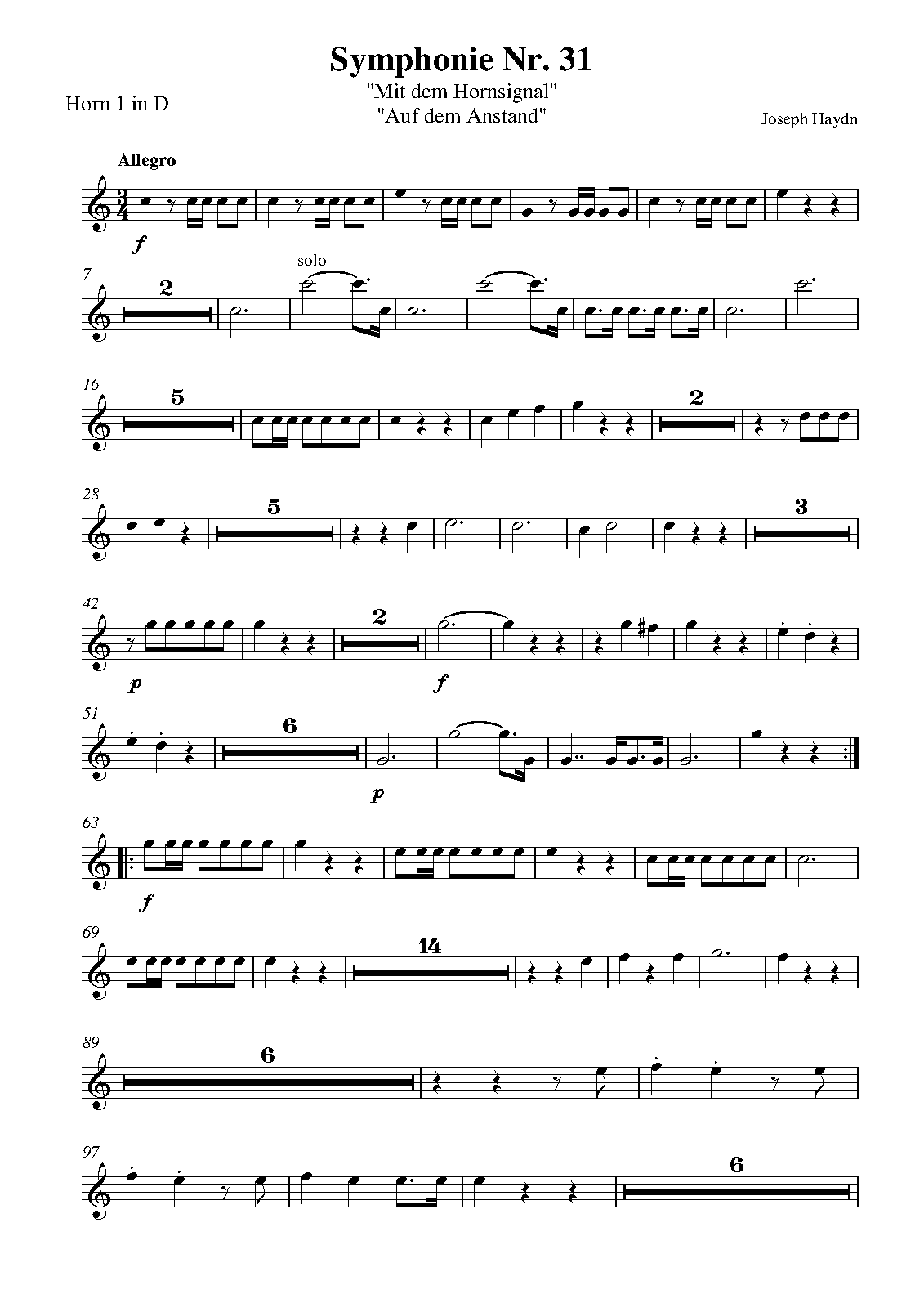 | Name Aliases | Mit dem Hornsignal; Auf dem Anstand; Symphony No. 31 in D Major; Hornsignal; Symfonie nr. 31 (Haydn); |