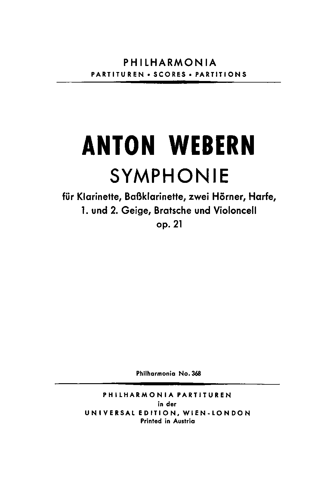| Name Translations | Sinfonia (Webern); Symphonie, op. 21; 交響曲 (ヴェーベルン); Symphonie de Webern; Sinfonía Op. 21; Symphony, Op. 21 |