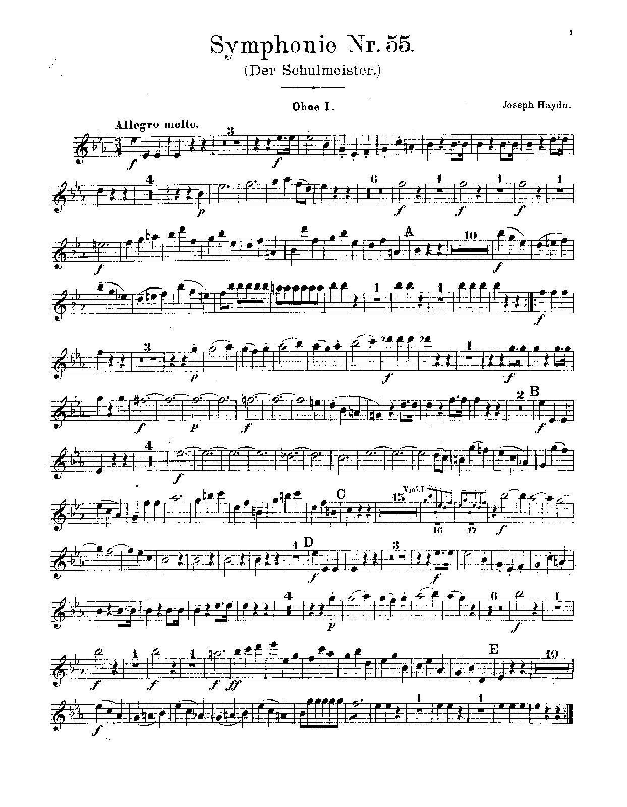 | Name Aliases | Der Schulmeister; Symfonie nr. 55 (Haydn); Symphony No. 55 in E-flat major, H.I:55, "The Schoolmaster"; Symphony No. 55 in E-flat major, H.I:55, "Der Schulmeister"; Sinfonía n.º 55 en mi bemol mayor, Hob. I:55; El profesor |