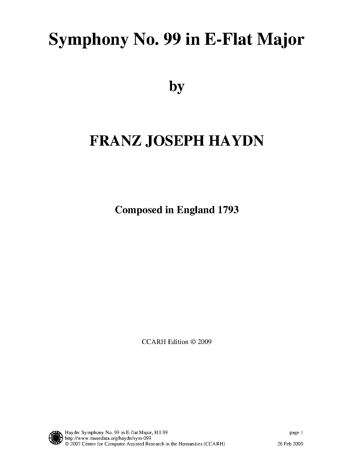 | Name Aliases | Symfonie nr. 99 (Haydn); Sinfonía n.º 99 en mi bemol mayor, Hob. I:99 |