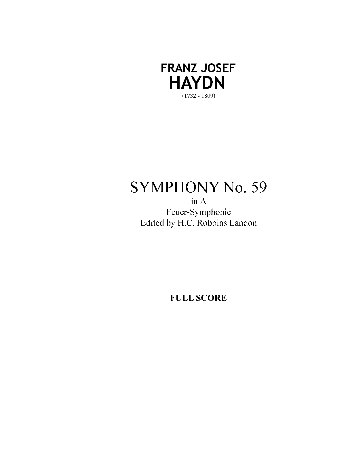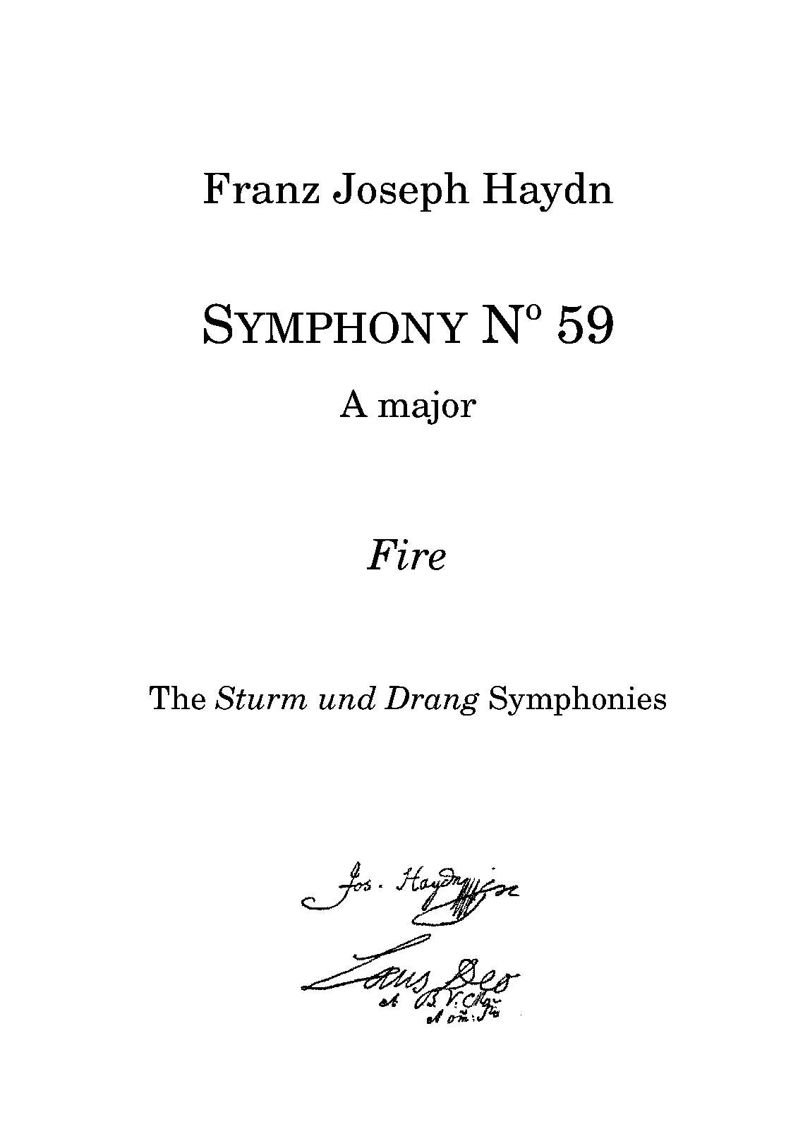 | Name Aliases | Feuersinfonie; Symfonie nr. 59 (Haydn); Symphony No. 59 in A Major, H.I:59, "Fire"; Sinfonía n.º 59 en la mayor, Hob. I:59; Sinfonía del fuego |