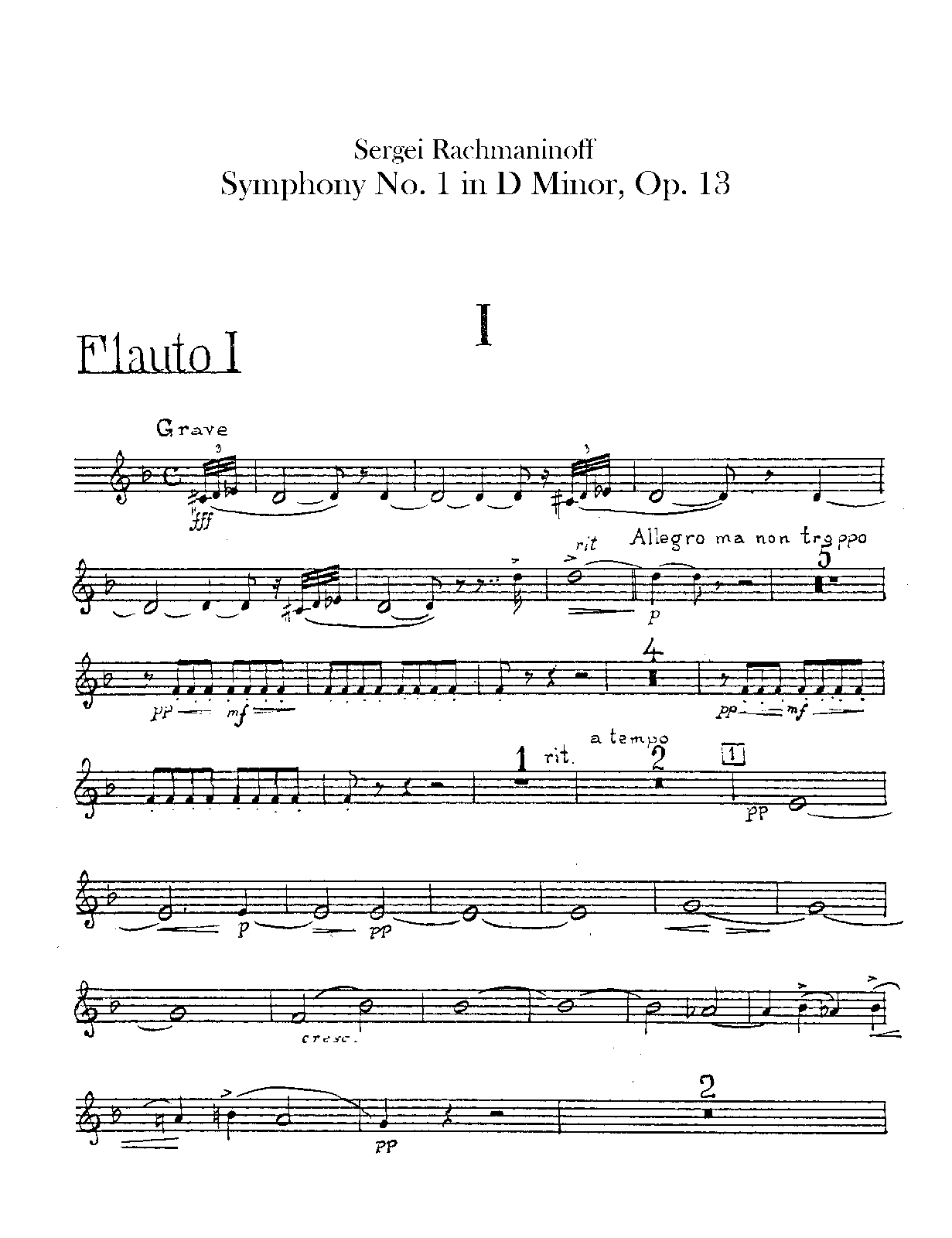 | Name Aliases | Symphony No. 1 in D Minor, Op. 13; Symfonie nr. 1 (Rachmaninov); 1η Συμφωνία; Συμφωνία αρ. 1, έργο 13; 1η Συμφωνία, έργο 13; |