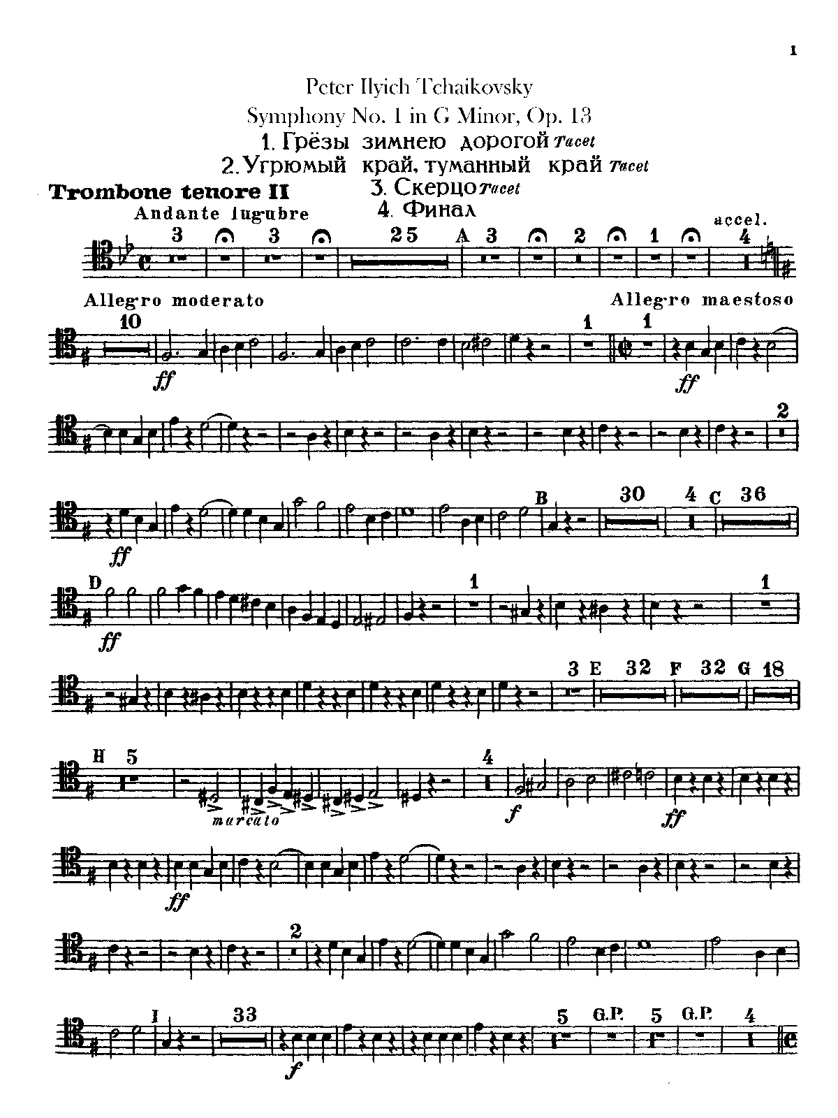 ⇒ 5 more: Complete Score (with bar numbers added) • 1. Daydreams on a Winter Journey. Allegro tranquillo • 2. Land of Gloom, Land of Mist. Adagio cantabile ma non tanto • 3. Scherzo. Allegro scherzando giocoso • 4. Finale. Andante lugubre—Allegro maestoso