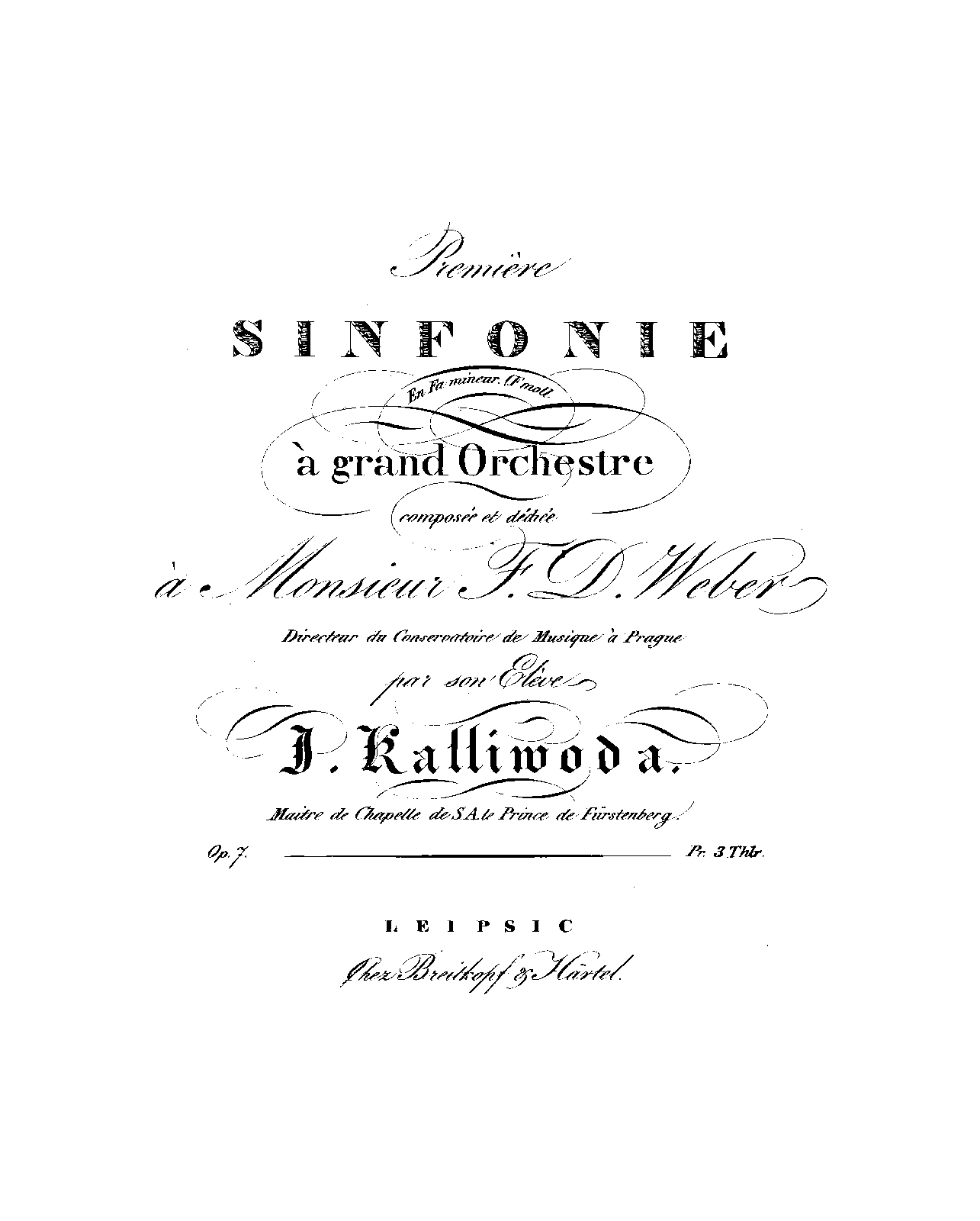 | Dedication | S[on]. A[ltesse]. le Prince de Fürstenberg (source?) à Monsieur F.D. Weber Directeur du Conservatoire de Musique à Prague (per first edition parts) |