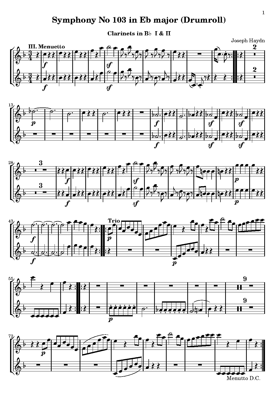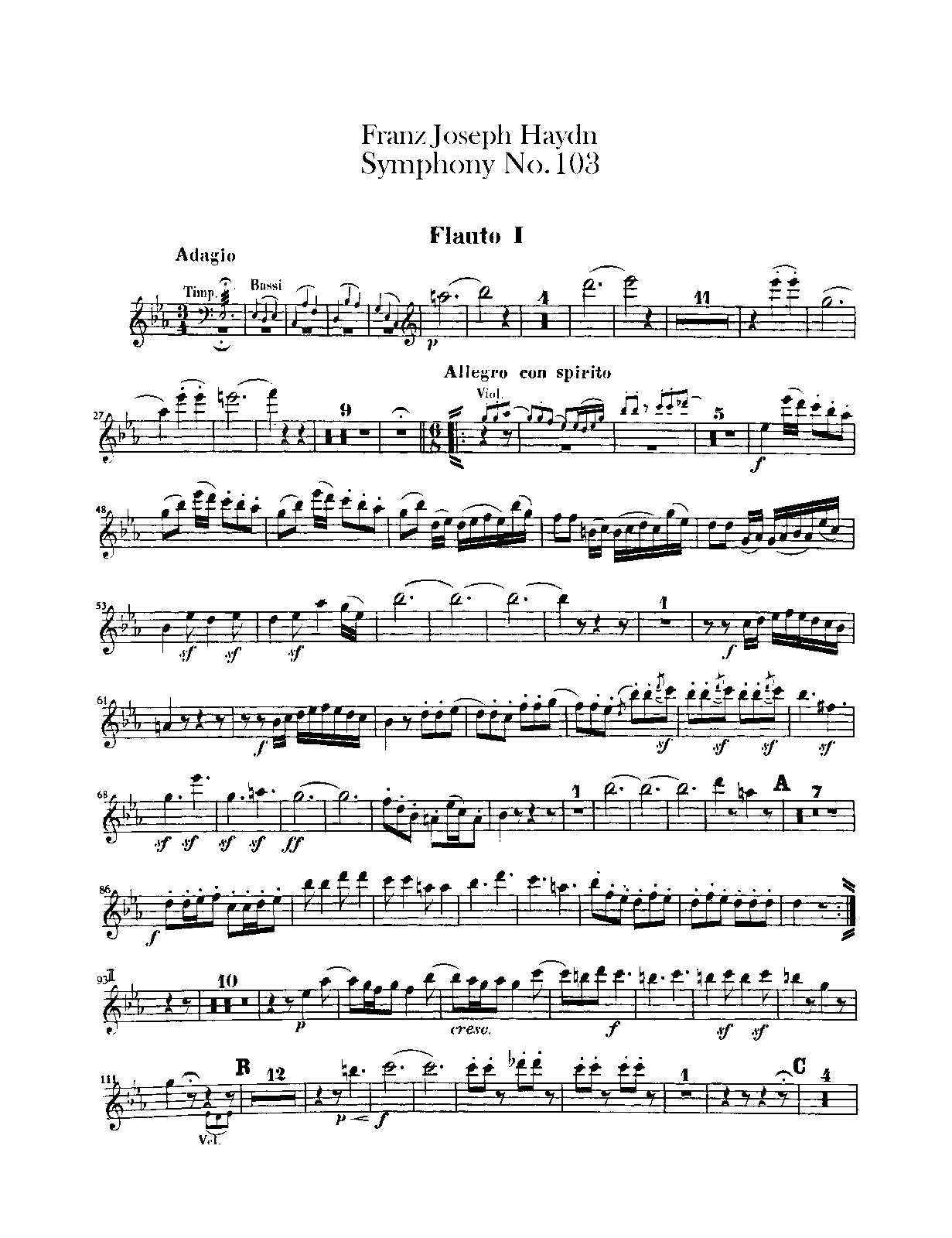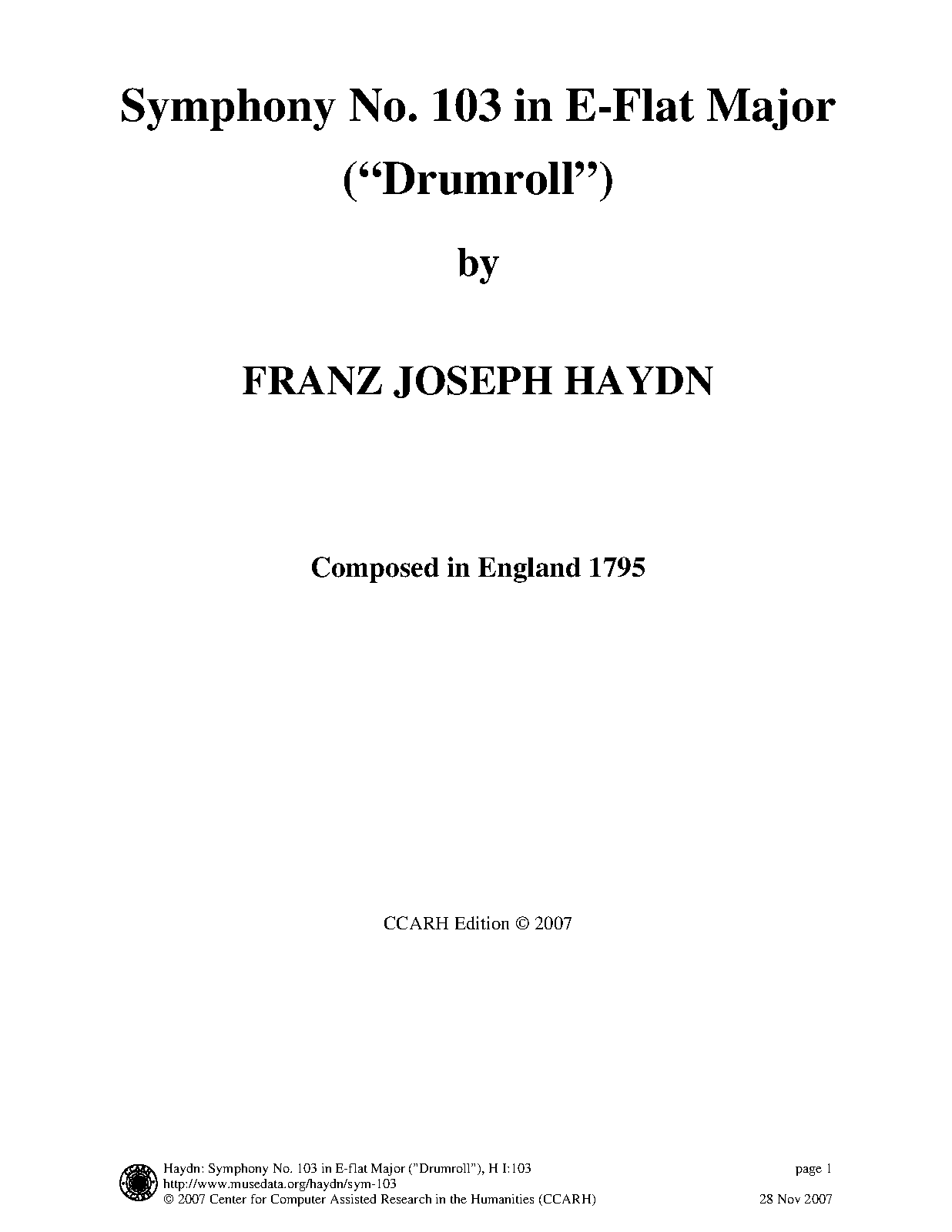 | Name Aliases | Symphony No.103 in E flat Major; Symfonie nr. 103 (Haydn); Sinfonía n.º 103 en mi bemol mayor, Hob. I:103; Redoble de timbal |