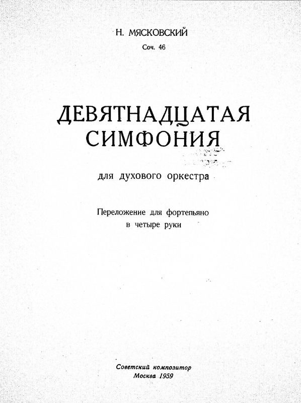 - Symphony No.19 in E♭ major, Op.46 (1939)