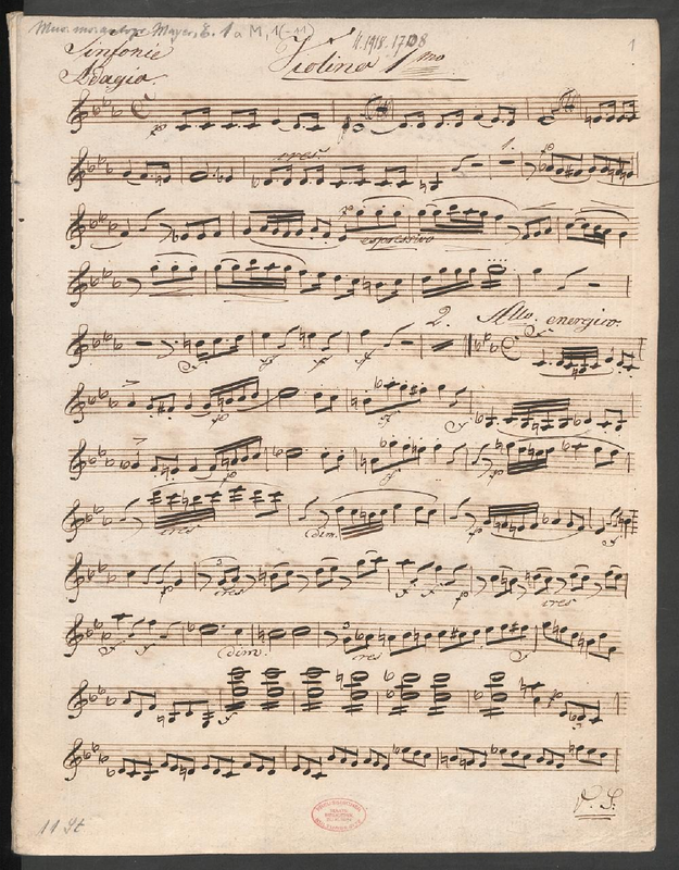 Staatsbibliothek zu Berlin (D-B): Mus.ms.autogr. Mayer, E. 1a M Missing fl. 1, 2; ob. 1, 2; hrn. 2; tr. (clarinos) 1, 2; timp.; vlc; cb