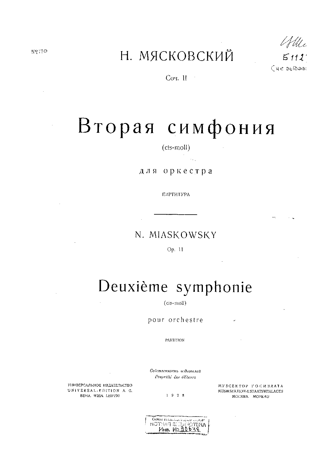| First Publication. | 1928 - Moscow: Muzgiz, Plate M. 8141 Г. |