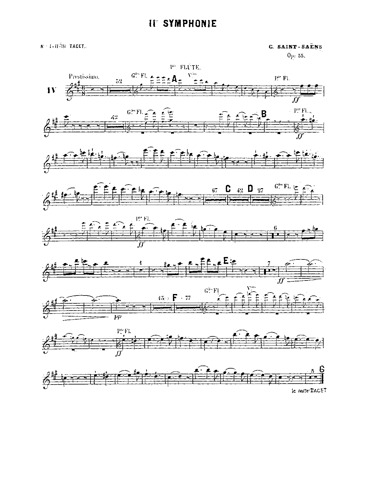 | Extra Information | Premiere information from Ratner, Camille Saint-Saëns, 1835-1921: The instrumental works, p.270. Dates 1879 and 1890 for Durand pf4h and 2pf arrangement publication dates from the same source. (French Wikipedia has 20 February 1859.) |