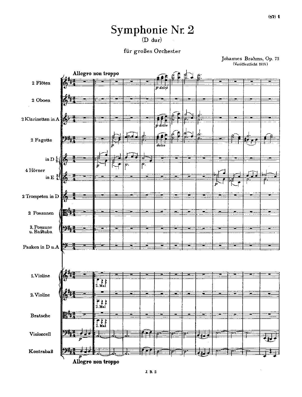Symphony No. 2 in D Major, Op. 73; Symfonie nr. 2 (Brahms); Sinfonía n.º 2 en re mayor, Op. 73