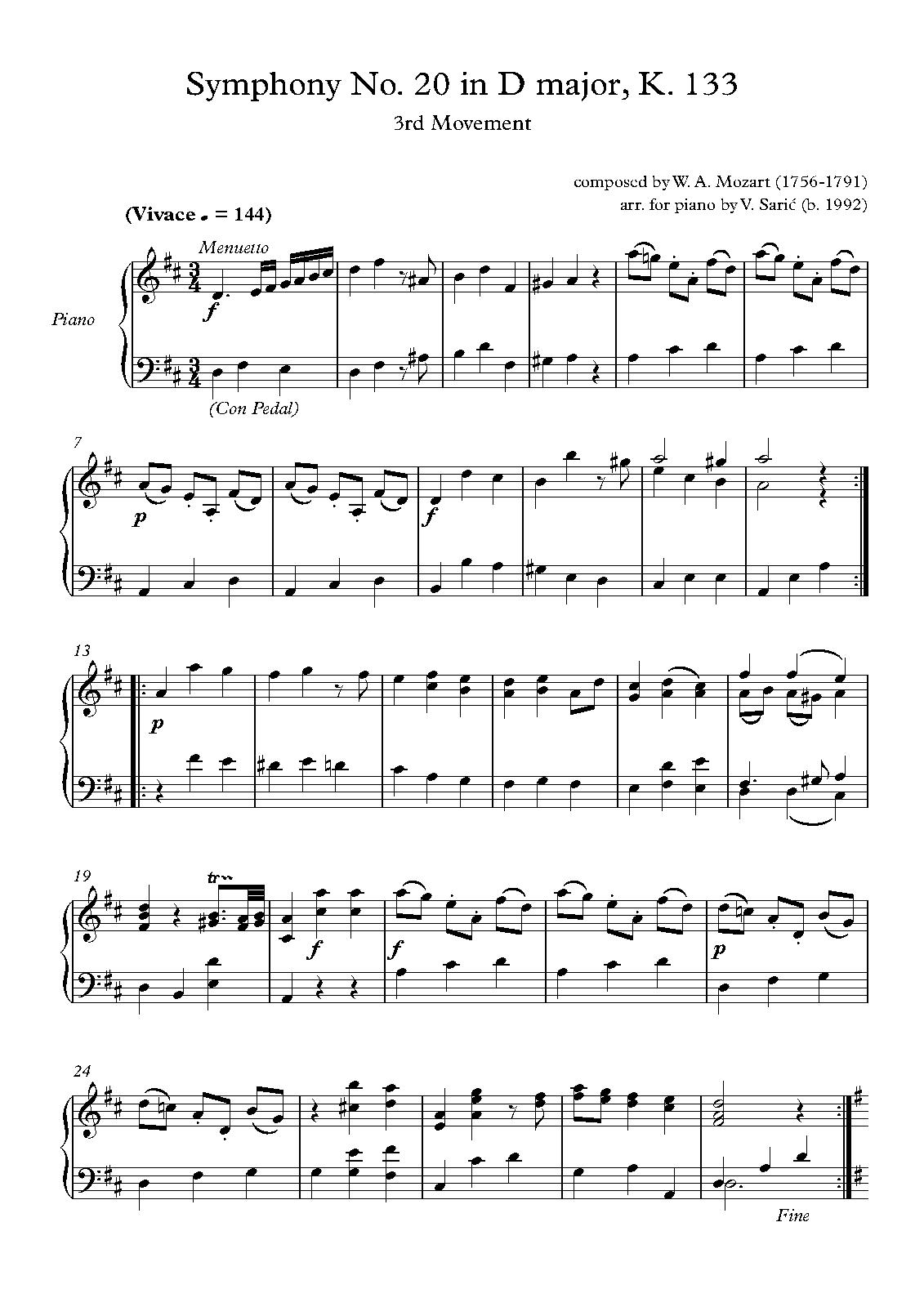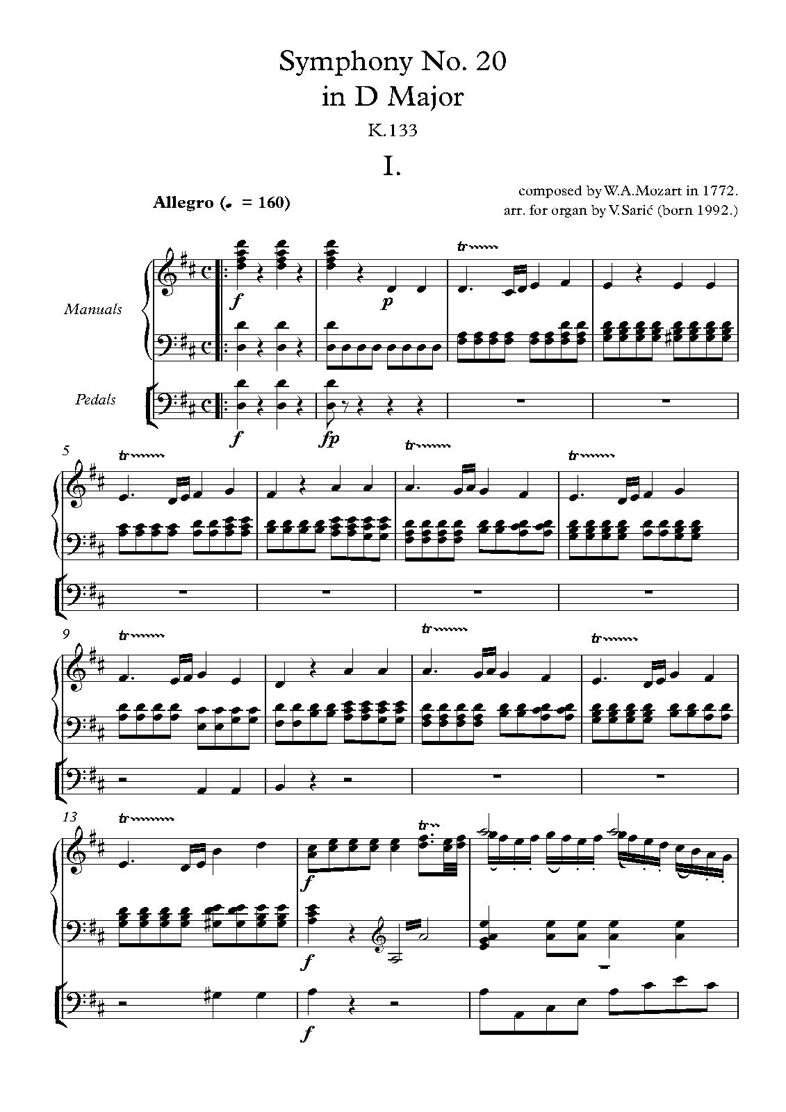 Symphony No.20 in D major, K.133 (Mozart, Wolfgang Amadeus)