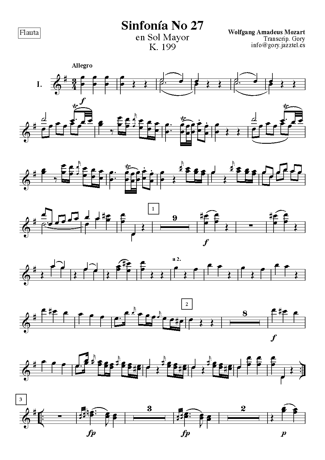 Name Aliases Sinfonie G-Dur KV 199; Symfonie nr. 27 (Mozart); Sinfonía n.º 27 en sol mayor, K. 199/161b