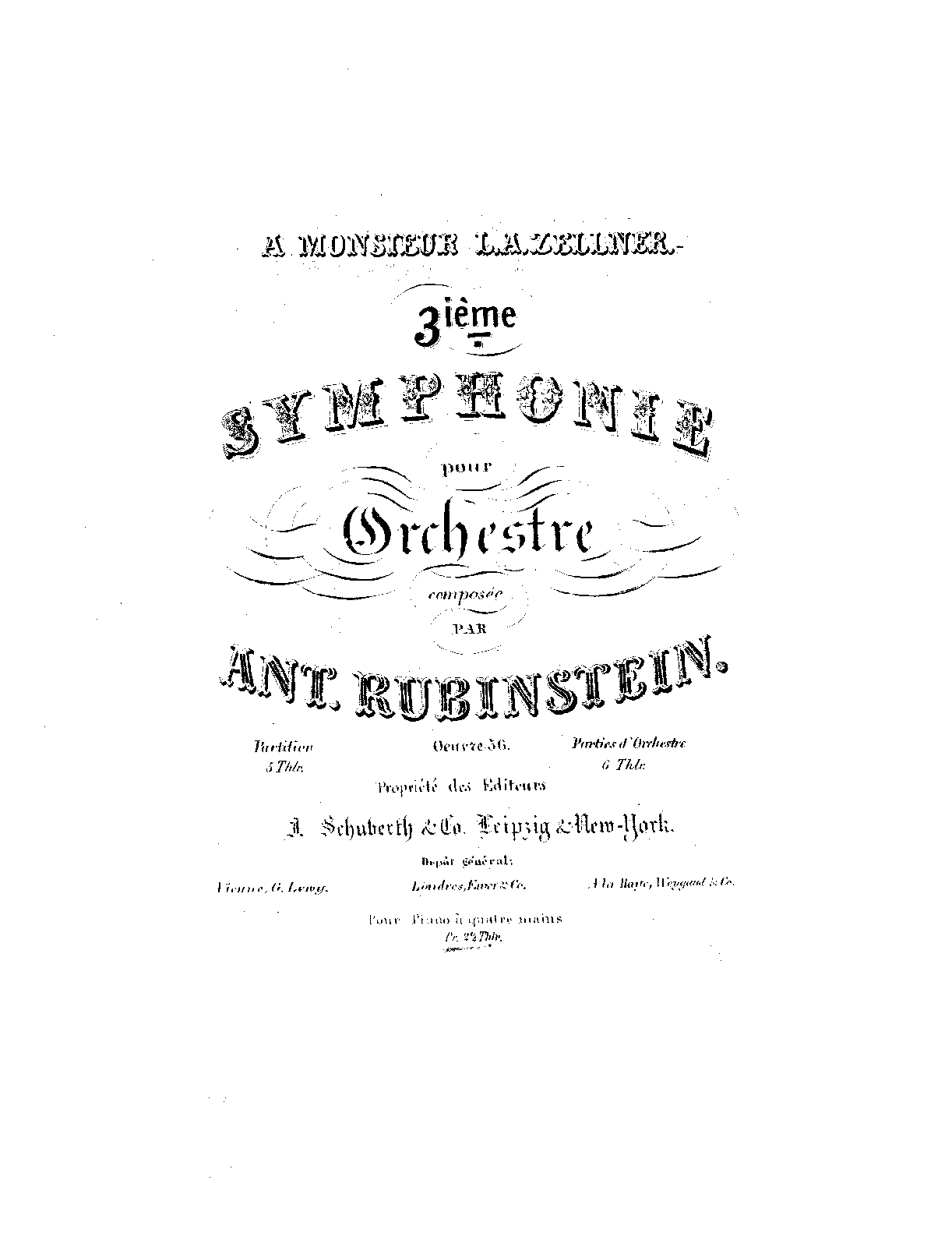 Dedicated to a Viennese music critic, L.A. Zellner, who first used the term Zukunftsmusik (Liszt wrote a famous letter to him about this) - who may also have been a composer and cellist of Croatian birth, but not sure (the time and initials make this possible, but that's not clinching evidence?) (Schissel) - however, see: Taylor: Anton Rubinstein: A Life in Music, p.61. Zellner had recently defended Rubinstein in the press and Rubinstein dedicated this symphony to him in gratitude. "Mr. Zellner, however, is a good musician, a composer himself", begins a letter Rubinstein wrote Liszt and which Taylor quotes.