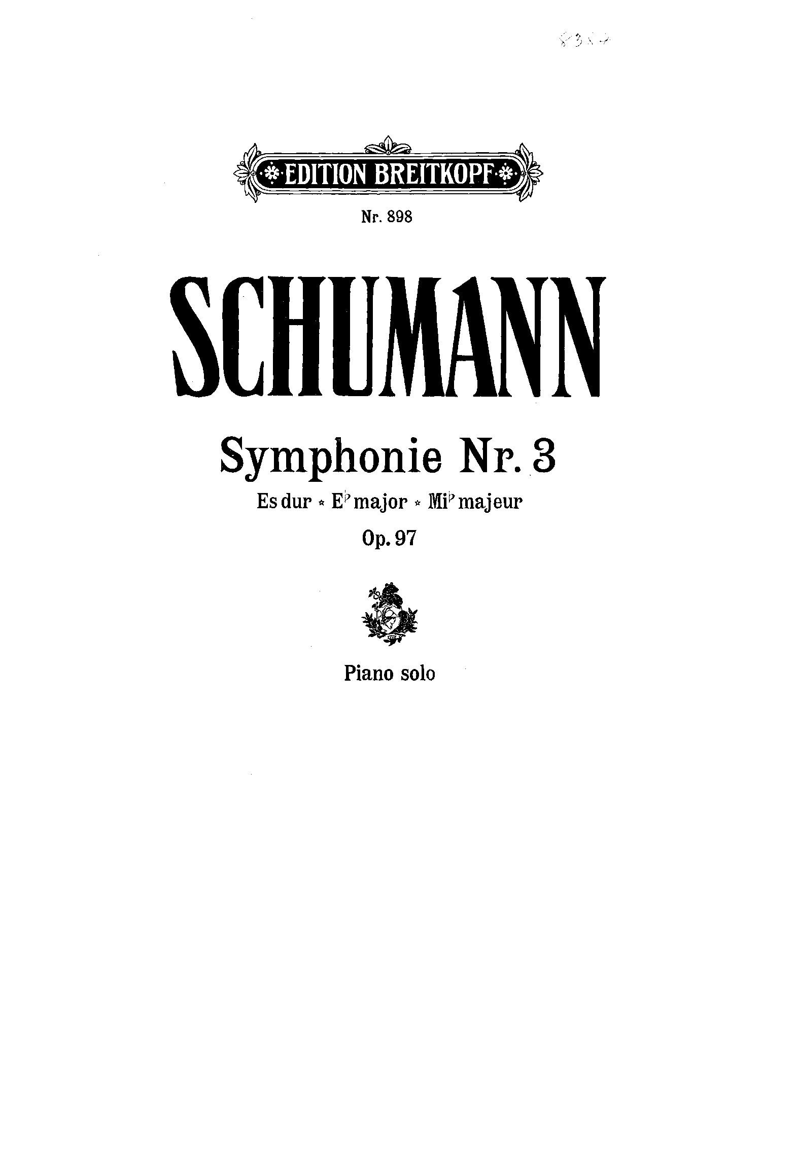 | Name Aliases | Rheinische Sinfonie; 3. Sinfonie Es-Dur op. 97; Dritte Symphonie (Es dur); Rhenish; Symphony No. 3 in E-flat Major, Op. 97 "Rhenish"; |