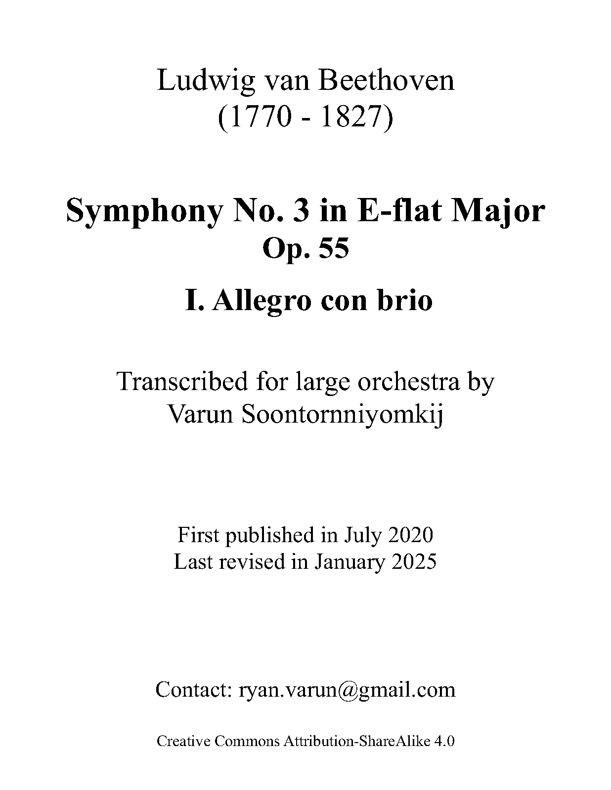 | Related Works | The 4th mvt. (Finale) uses the theme of Variations and Fugue in E-flat major, Op.35 |
