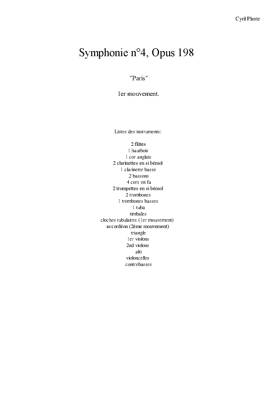 | Movements/SectionsMov'ts/Sec's | 4 movements |