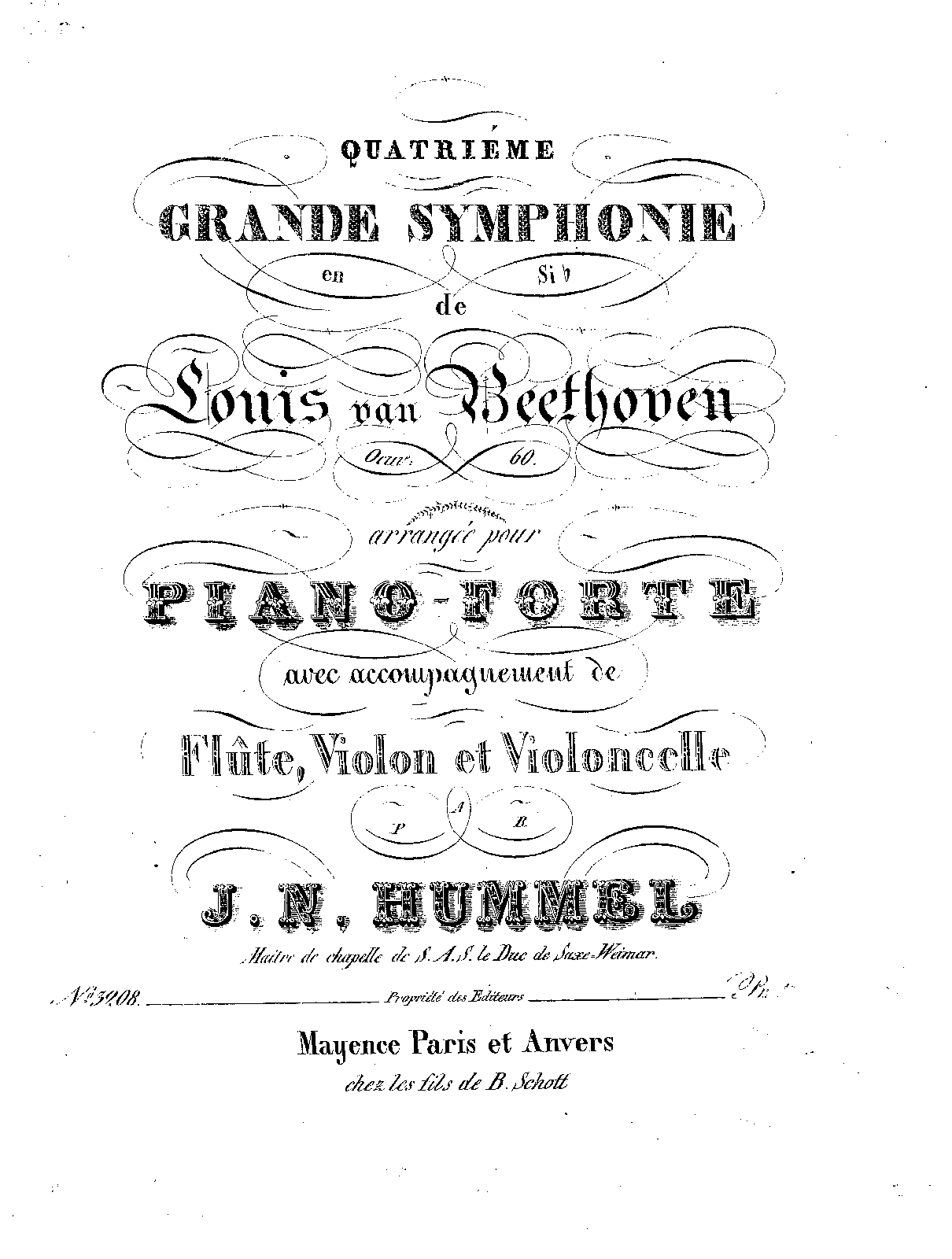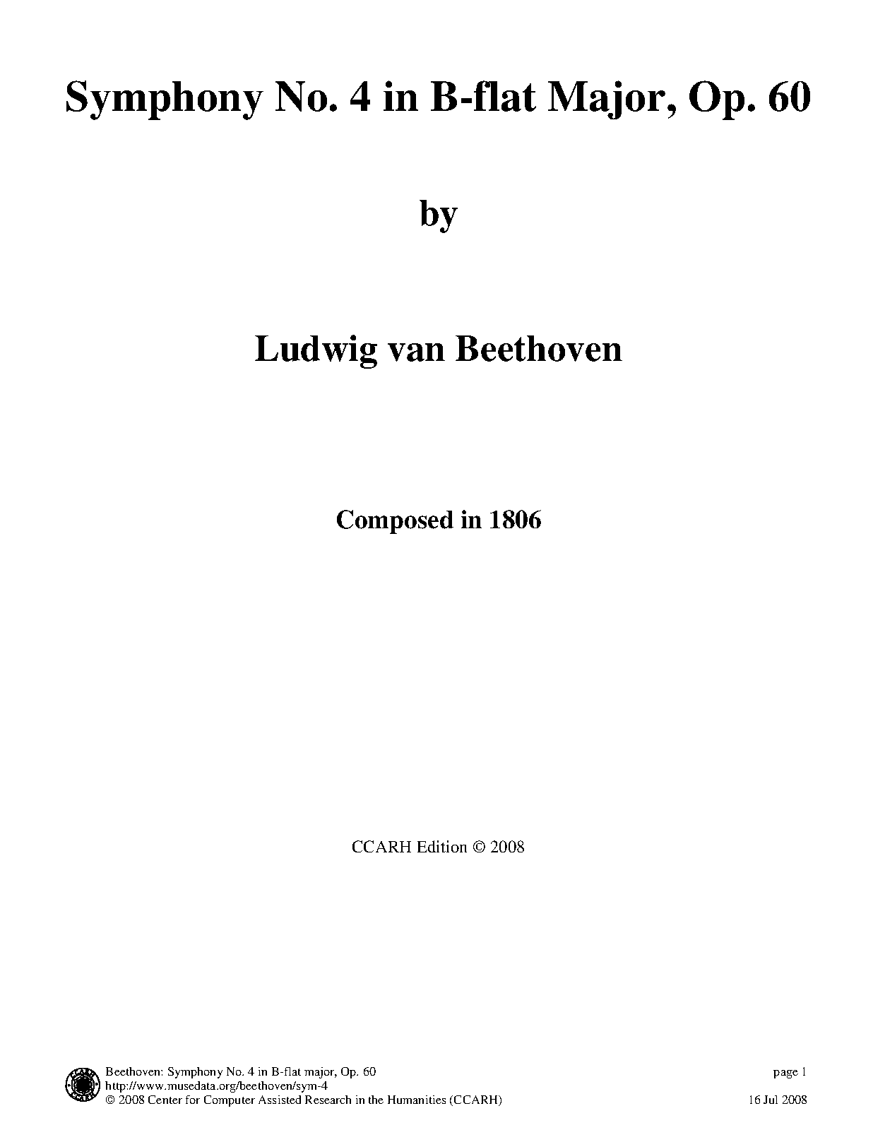 | Name Aliases | Quarta sinfonia di Beethoven; Quarta di Beethoven; Sinfonia n. 4 di Beethoven; Symphony No. 4 in B-flat Major, Op. 60; Simfonio Numero 4; |