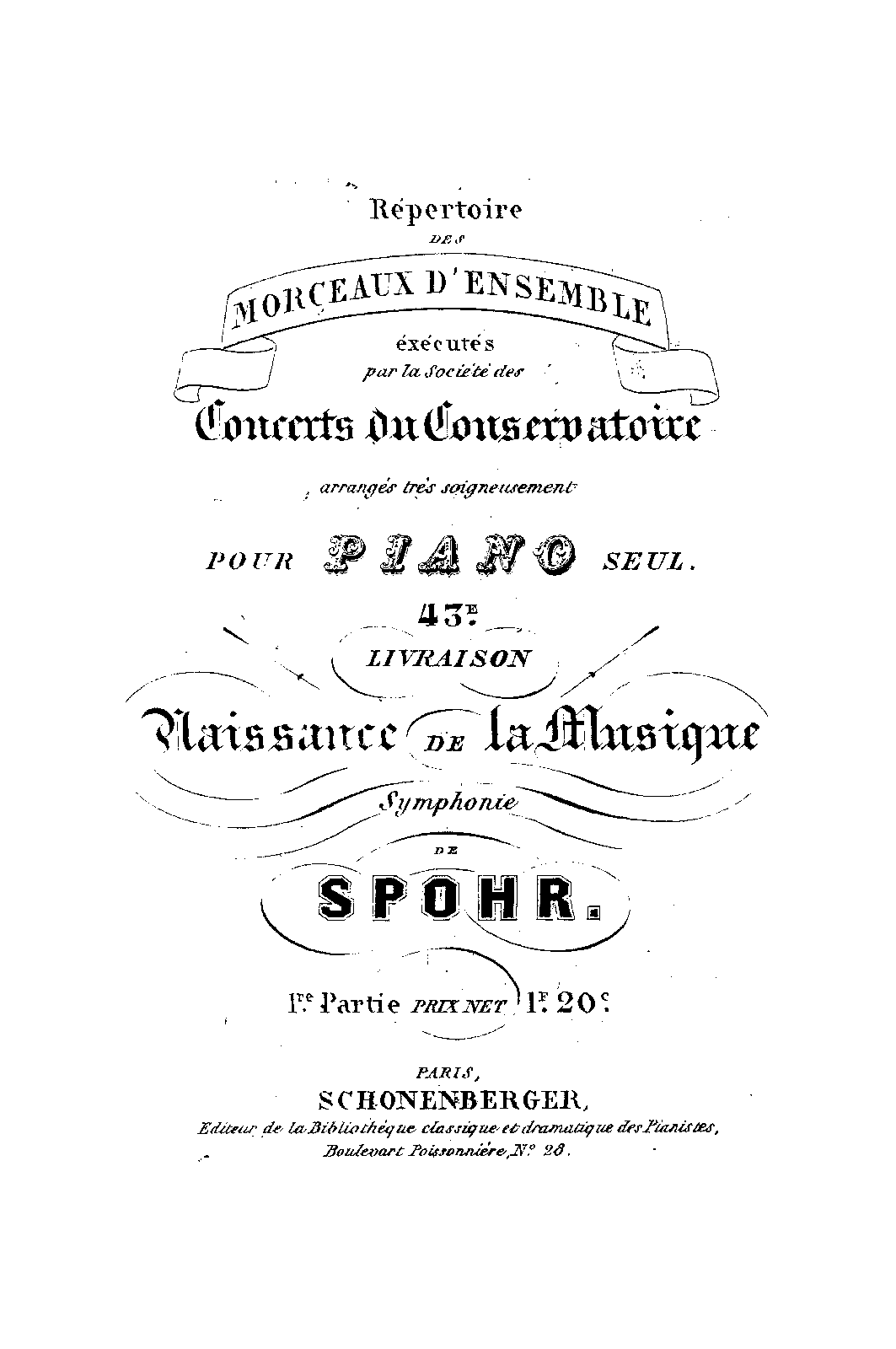 Repertoire des morceaux d’ensemble éxécutés par la Société des Concerts du Conservatoire. 43e livraison. Paris: Schonenberger, n.d.(1846?).