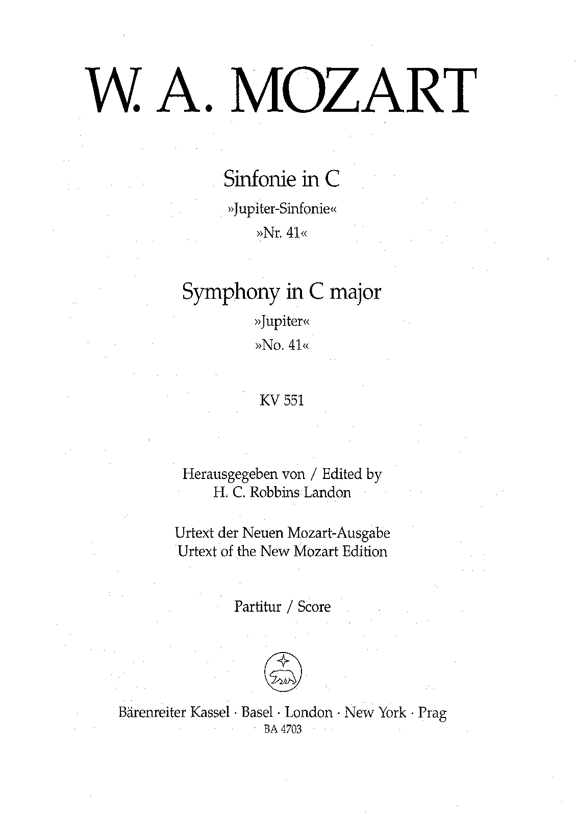Name Aliases Sinfonie C-Dur KV 551; Jupiter-Sinfonie; Symphony No. 41 in C major; K. 551; Sinfonia n. 41 in Do maggiore K 551; Sinfonia Jupiter; Symfonie nr. 41 (Mozart); Sinfonia nro 41 (Mozart); Mozartin 41. sinfonia; Sinfonia nro 41 C-duuri; Jupiter-sinfonia
