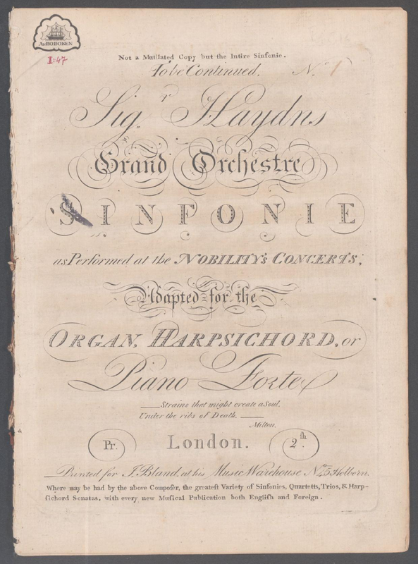 | Extra Information | Bundled with symphonies 43, 52 as Op.25 and published in 1774 by Sieber. 1784 parts publication from Napier acc.to Hoboken (mentioned in a January 1784 Morning Herald). |