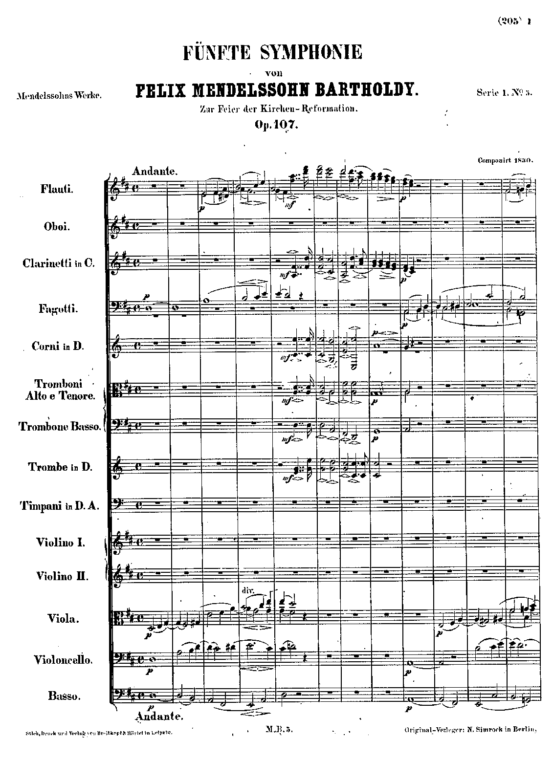 | Name Aliases | Sinfonie Nr. 5 in D-Dur/d-Moll op. 107; MWV N 15; Sinfonía n.º 5 en re mayor, Op. 107; Sinfonía de la Reforma; 宗教改革; Reformation |