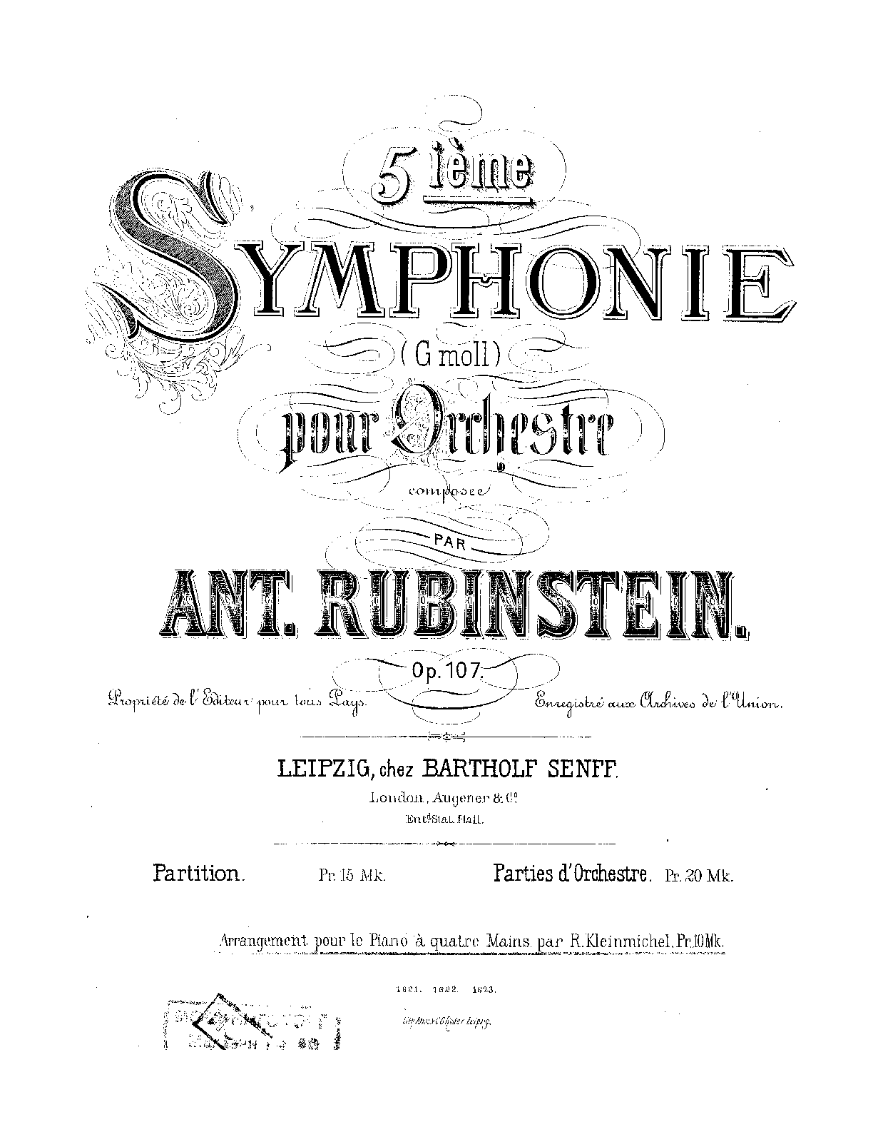 | Name Translations | 交響曲第5番 (ルビンシテイン); Symphonie n°5; Symphony No. 5; Симфония № 5 соль минор; Sinfonia n. 5 (Rubinštejn); Symfoni nr. 5 |