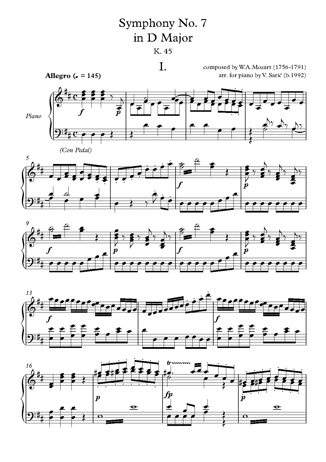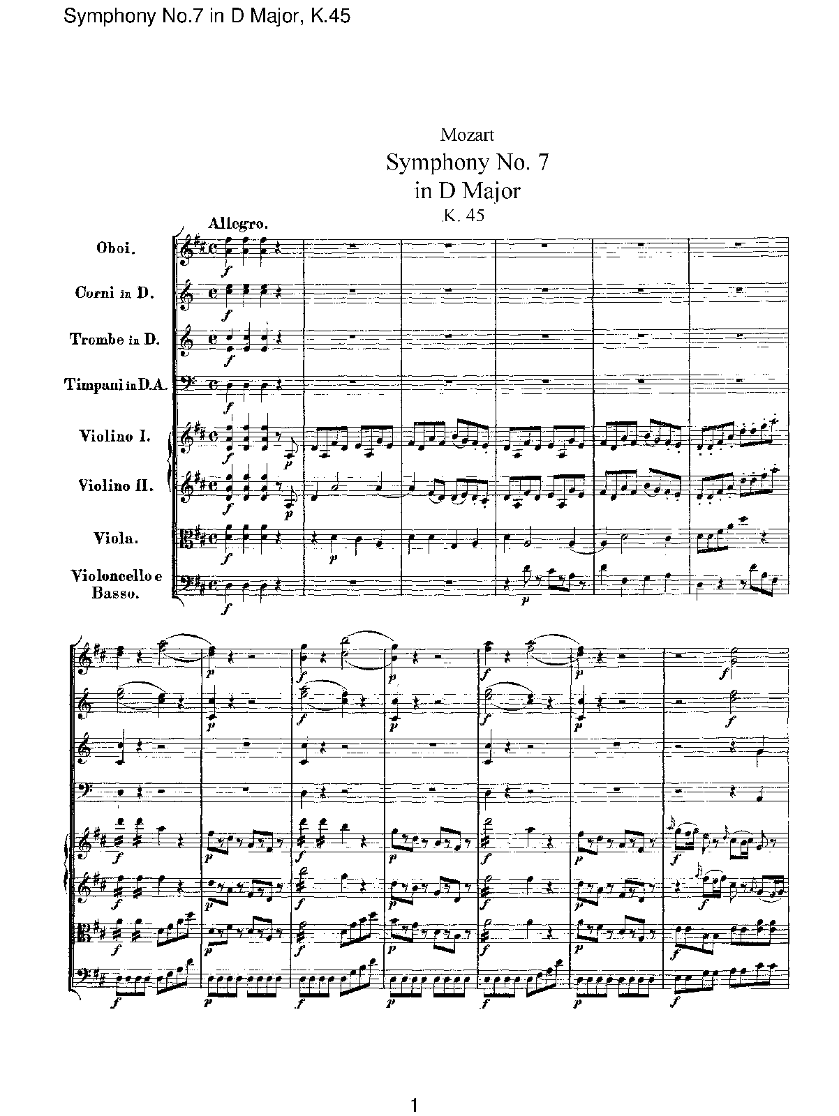 | Name Aliases | Sinfonie KV 45; Symphony No. 7 in D major, K. 45; Symfonie nr. 7 (Mozart); Συμφωνία αρ. 7 σε Ρε μείζονα, K. 45; 7η συμφωνία; Sinfonía n.º 7 en re mayor, K. 45 |