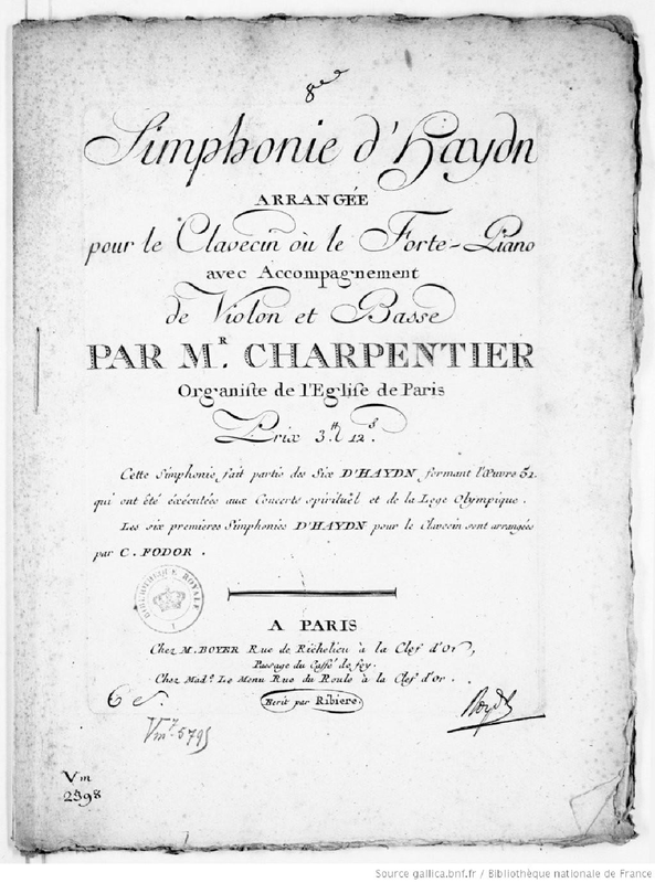 | Extra Information | Artaria and Hummel both published orchestral parts in 1787. The earliest published score may have been Auguste LeDuc's in 1801 or so. |
