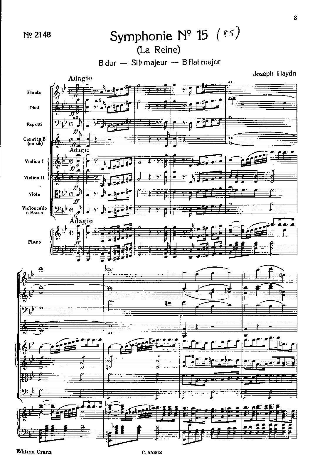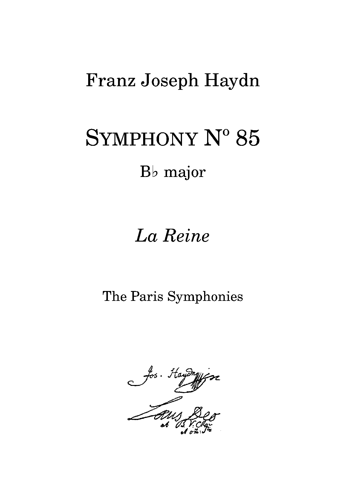 | Name Aliases | Symphony No. 85 in B-flat Major, H.I:85, "La reine"; Symfonie nr. 85 (Haydn); Sinfonía n.º 85 en si bemol mayor, Hob. I:85; La reina; La reine |