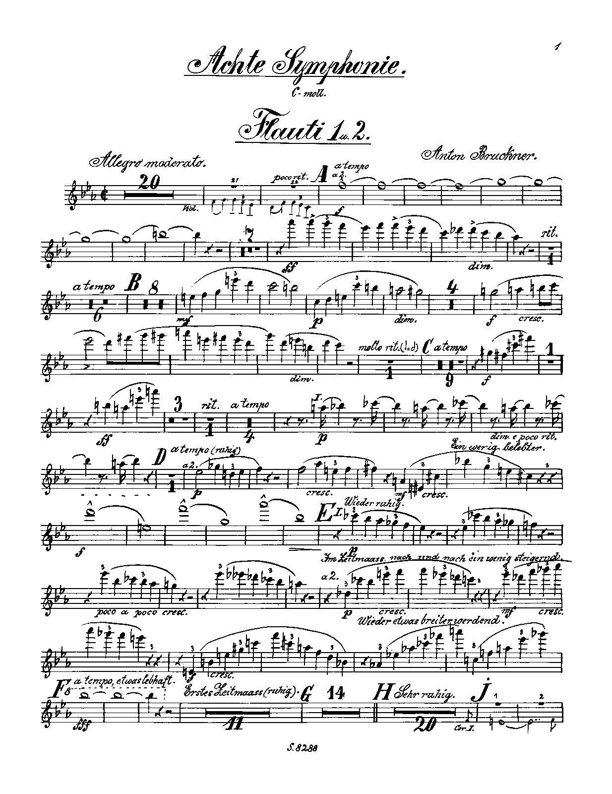 Misc. Notes This score is of the 1892 first edition of the Symphony and differs in many places from the Haas and Nowak versions usually heard in recordings. As musicologist Benjamin Korstvedt persuasively argues (in Bruckner Symphony No. 8, Cambridge Music Handbooks, Cambridge UP, 2000), the considerable number of additional tempo changes, especially in the finale, shed important light on performance practices at the time of the work's premiere. The first edition "explains how the music should go far more explicitly -- and in a musically compelling way -- than do Bruckner's manuscript scores of the 1890 and 1887 versions and the modern critical editions based on them [i.e. Haas and Nowak]."