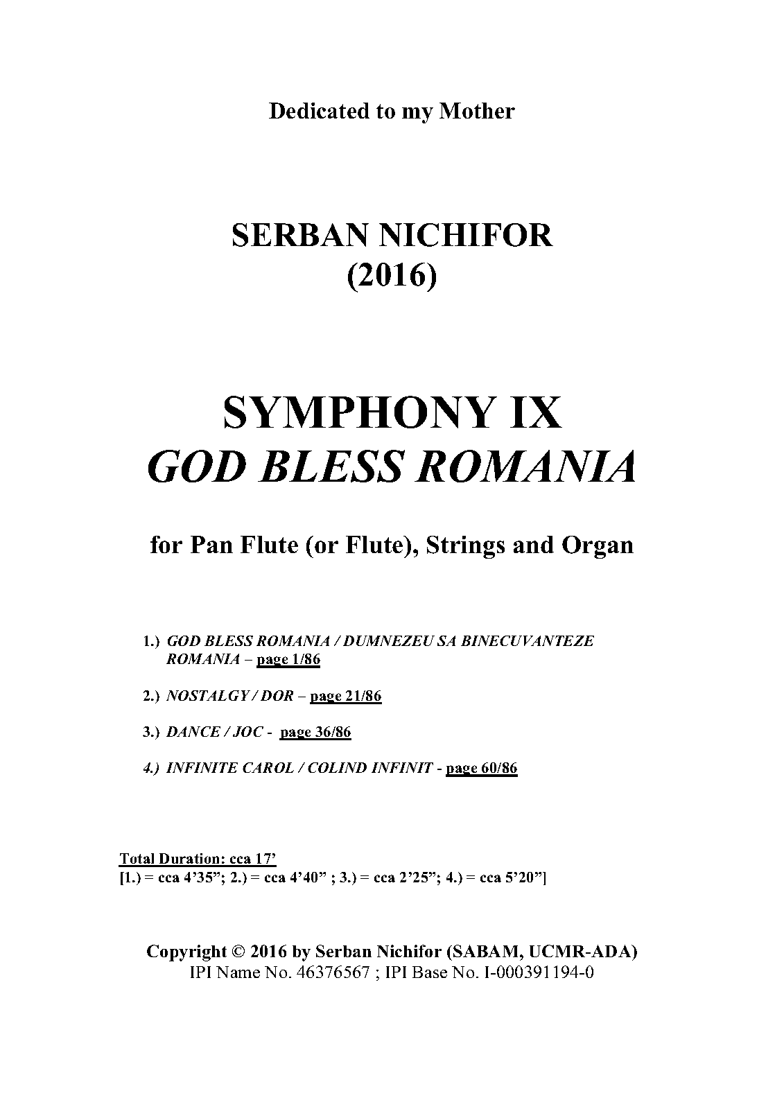 | Work Title | Symphony No. 9 God Bless Romania |