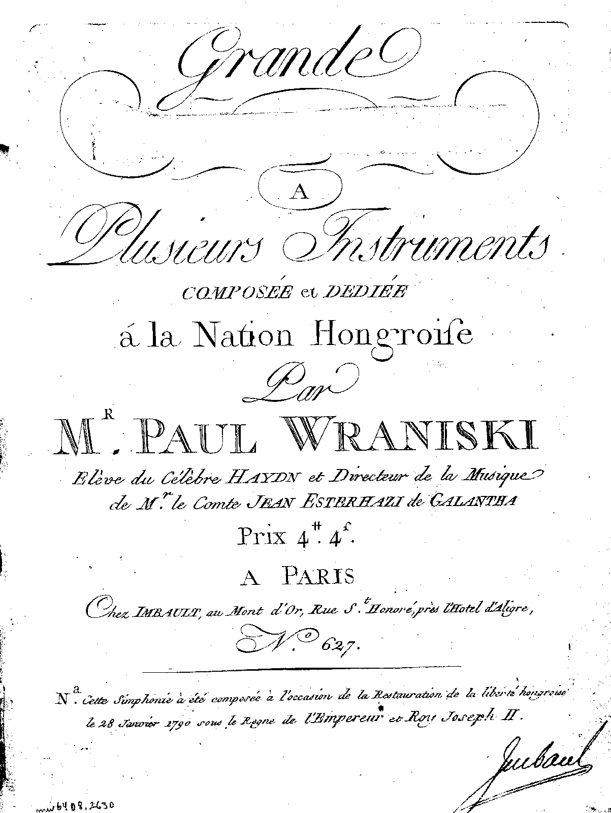 | Extra Information | Cette Simphonie à été composée à l'occasion de la Restauration de la liberté hongroise le 28 Janvier 1790 sous le Regne de l'Empereur et Roy Joseph II. This symphony was composed for the occasion of the restoration of Hungarian liberty on 28 January 1790, under the reign of the Emperor and King Joseph II. |