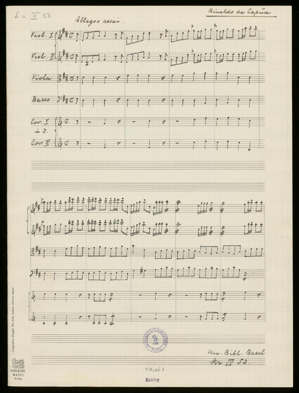 | Alternative. Title | Overtura à 6. del Sigr Rinaldo da Capua. |