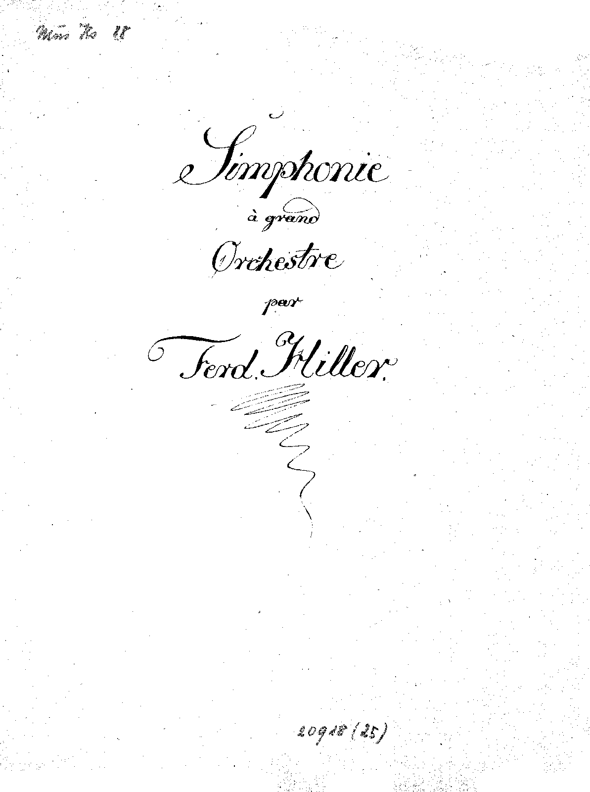 Entered into the composer's Tagebuch fur meine Compositionen (Aug. 30, 1825–Nov. 6, 1831) on sheets 34 verso and 35 recto for September, 1831. Hiller entered the following regarding the first two movements: "Allegro dazu umgearbeitet. Andante umgeschrieben". Apparently, this implies they had been either re-worked/re-written for inclusion in the symphony or written for the symphony and revised at this time.