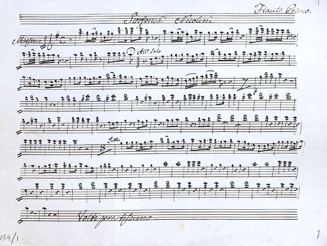 | Instrumentation | flute I, flute II, flute I/oboe, oboe solo, horn I, horn II, violin principal, violin I, violin II obbl., violin II, viola, cello, bass. |