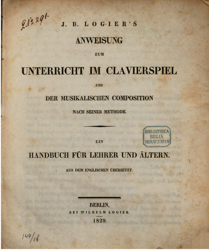 | Alternative. Title | Logier's System of, and Self Instructor in, the Science of Music, Harmony and Practical Composition |