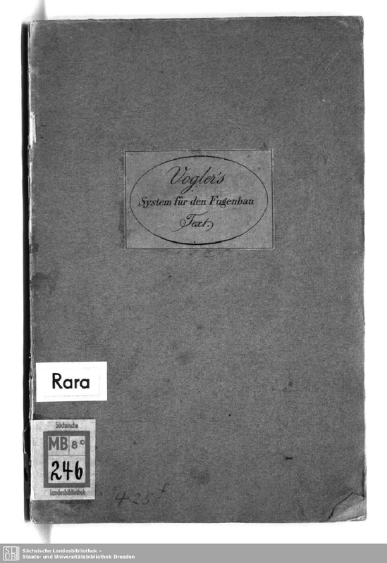 | Alternative. Title | System für den Fugenbau, als Einleitung zur harmonischen Gesang-Verbindungs-Lehre vom Abt Vogler. Nach dem hinterlassenen Manuscripts des Autors herausgegeben. Nebst 35 Seiten erklaerende Notenbeispiele |