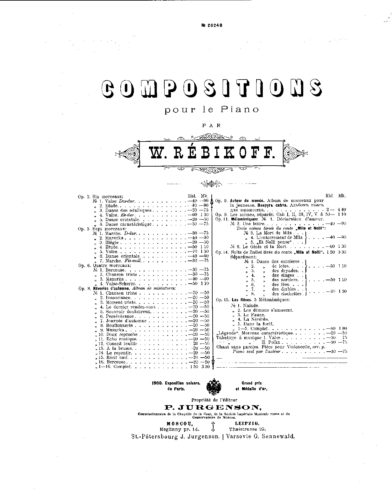 Publisher. Info. Moscow: P. Jurgenson, n.d.(1902-03). Plates 26240, 28371