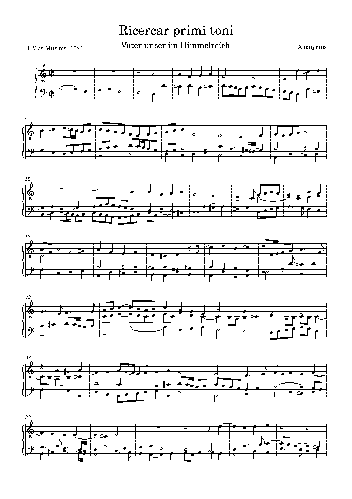 138. Ricercar primi toni (super Vater unser im Himmelreich)