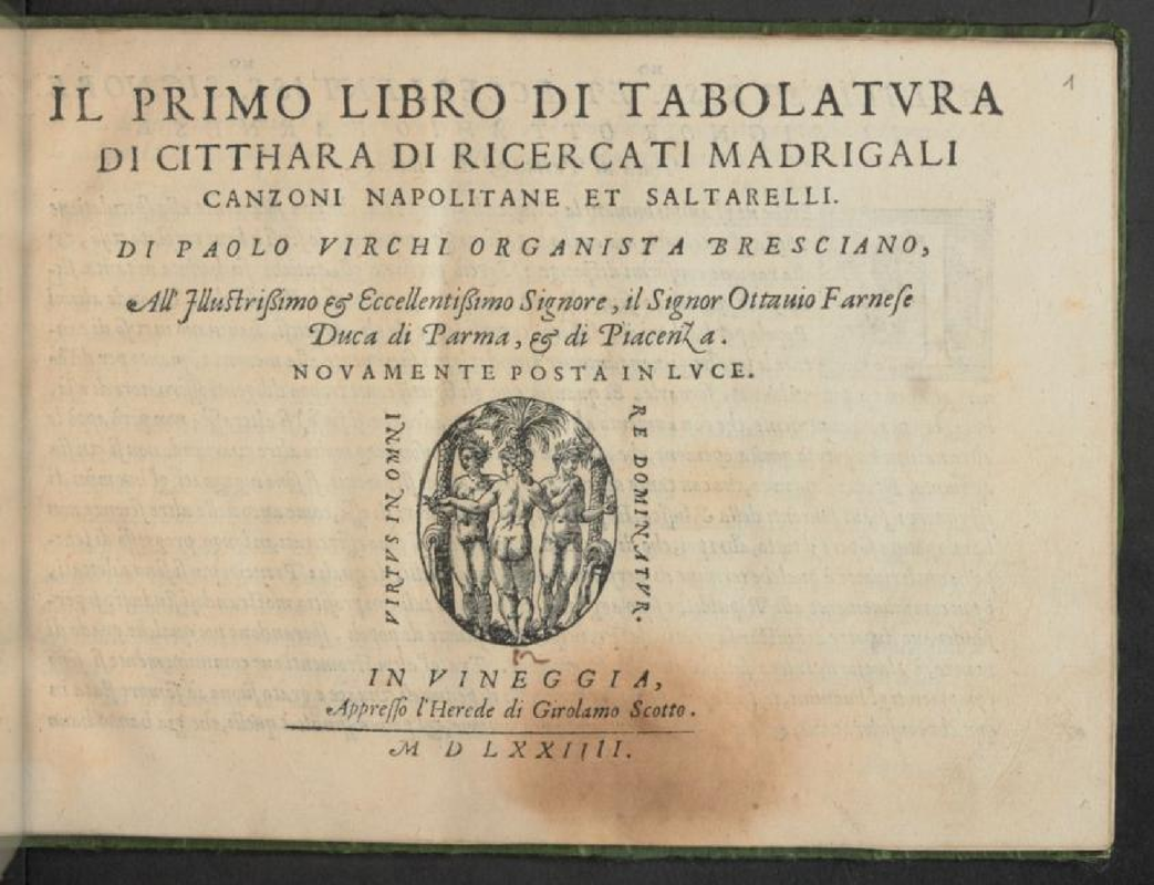| Alternative. Title | Il primo libro di tabolatvra di citthara di ricercati madrigali canzoni Napolitane et saltarelli |