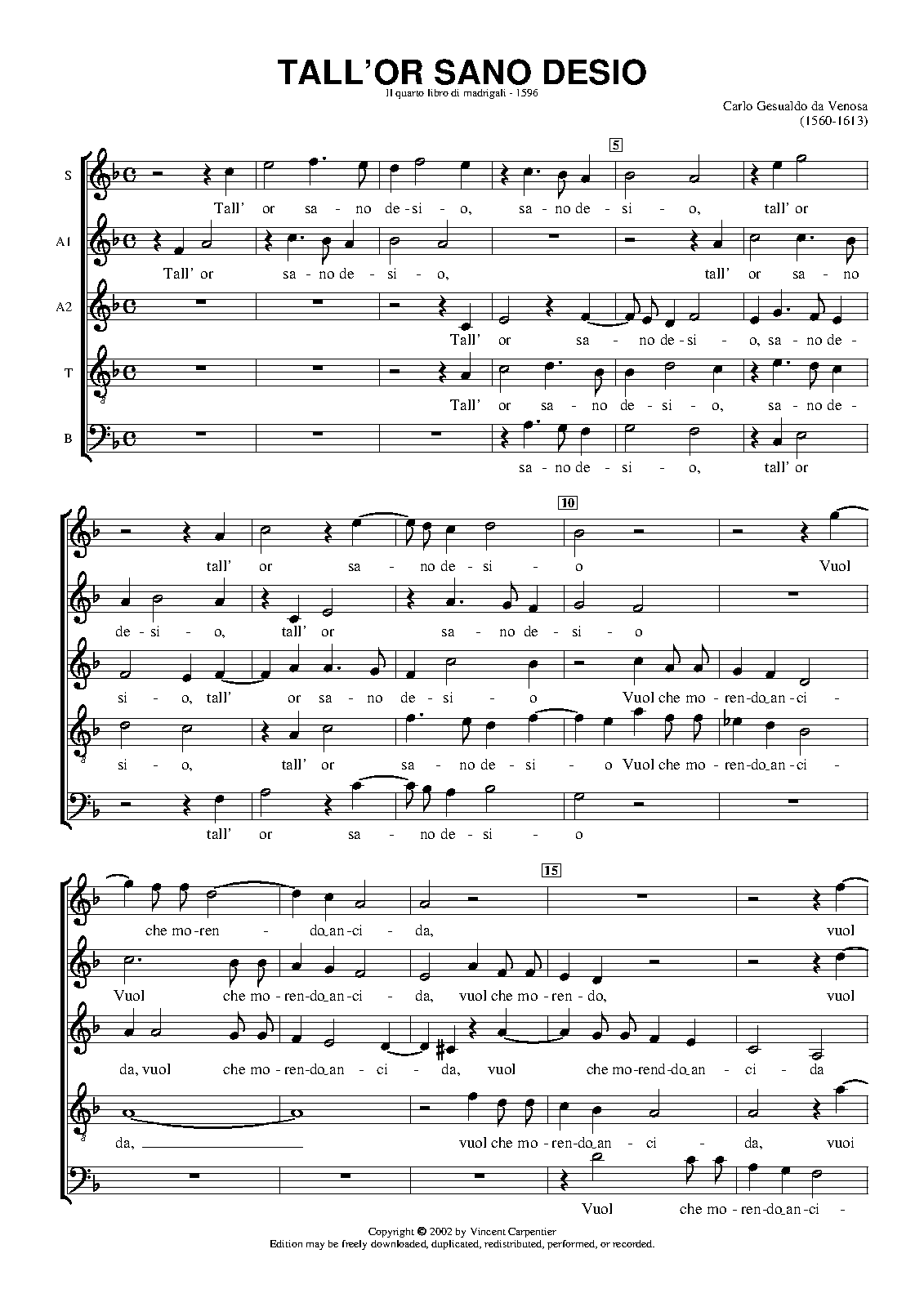 | First Publication | 1596 in Madrigali a cinque voci, Libro quatro (No.2) |