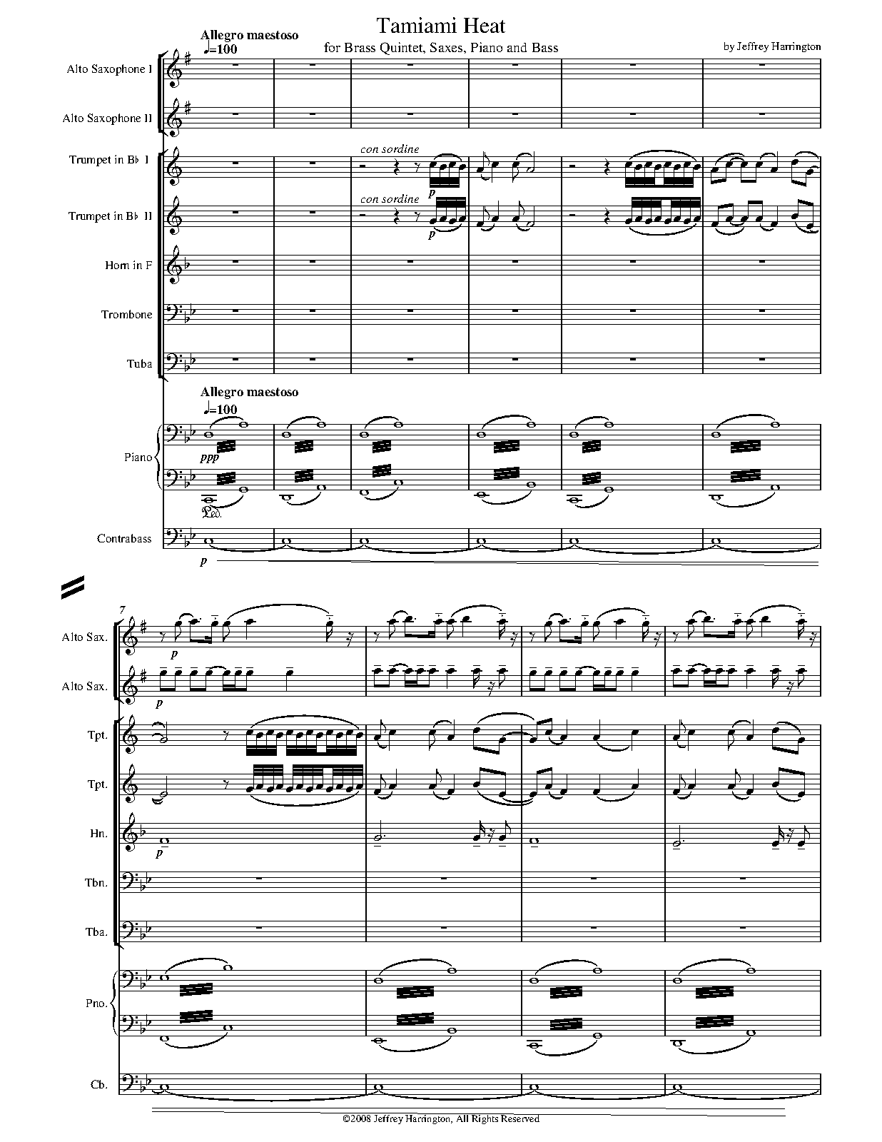 | Instrumentation | 2 alto saxophones, horn, 2 trumpets, trombone, tuba, contrabass, piano |