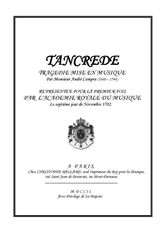 | Name Aliases | Tancrède (opéra, Campra); Tancrède (Campra); Tancredo (Campra); Tancrede |