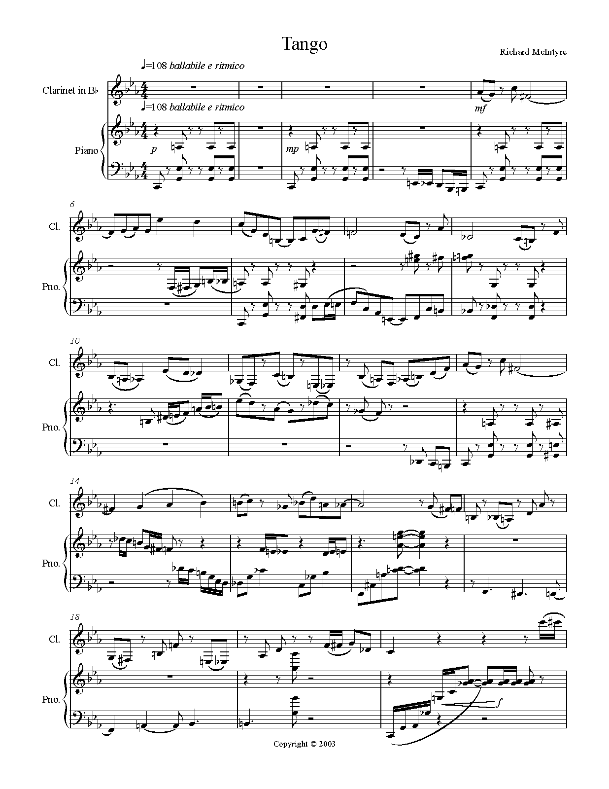 | Genre Categories | Tangos; Dances; For clarinet, piano; |