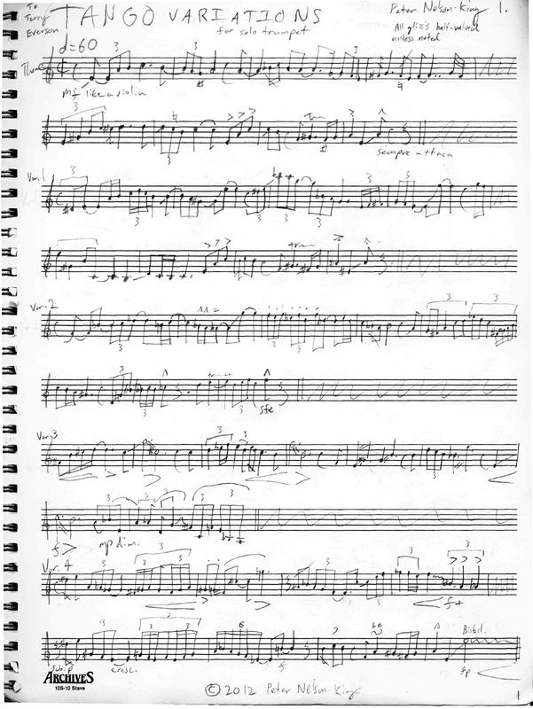 + Wavy lines after double bar lines are for formatting and are not performance related. + Bisbigliando: alternate between normal and alternate fingerings on same pitch + H.V.: Half-valve + In Variation 9, alternate between the two fingerings along the jagged line. + In the epilogue the player blows air without tone through the instrument and rhythmically tongues. The air flow stops with the final tongue.