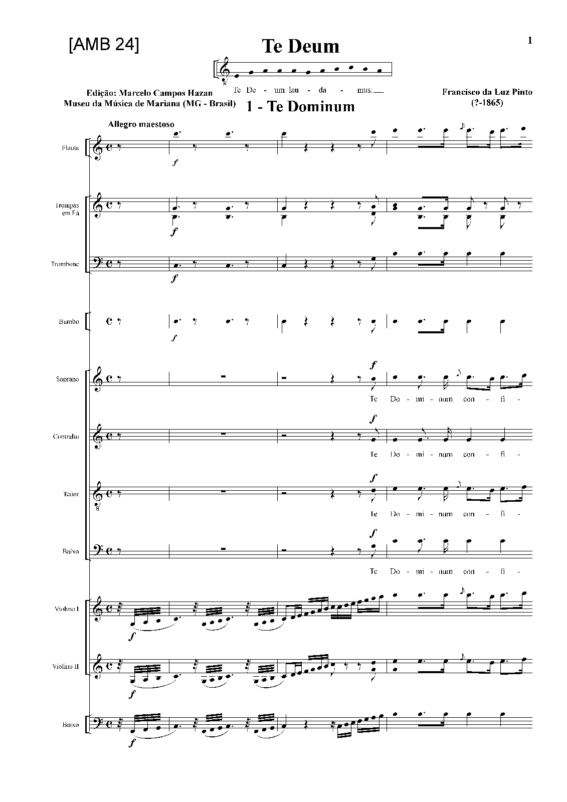 | Instrumentation | Chorus: Sopranos, Altos, Tenors and Basses Orchestra: Flute, 2 Horns, Trombone, Bumbo, Strings (no violas) |
