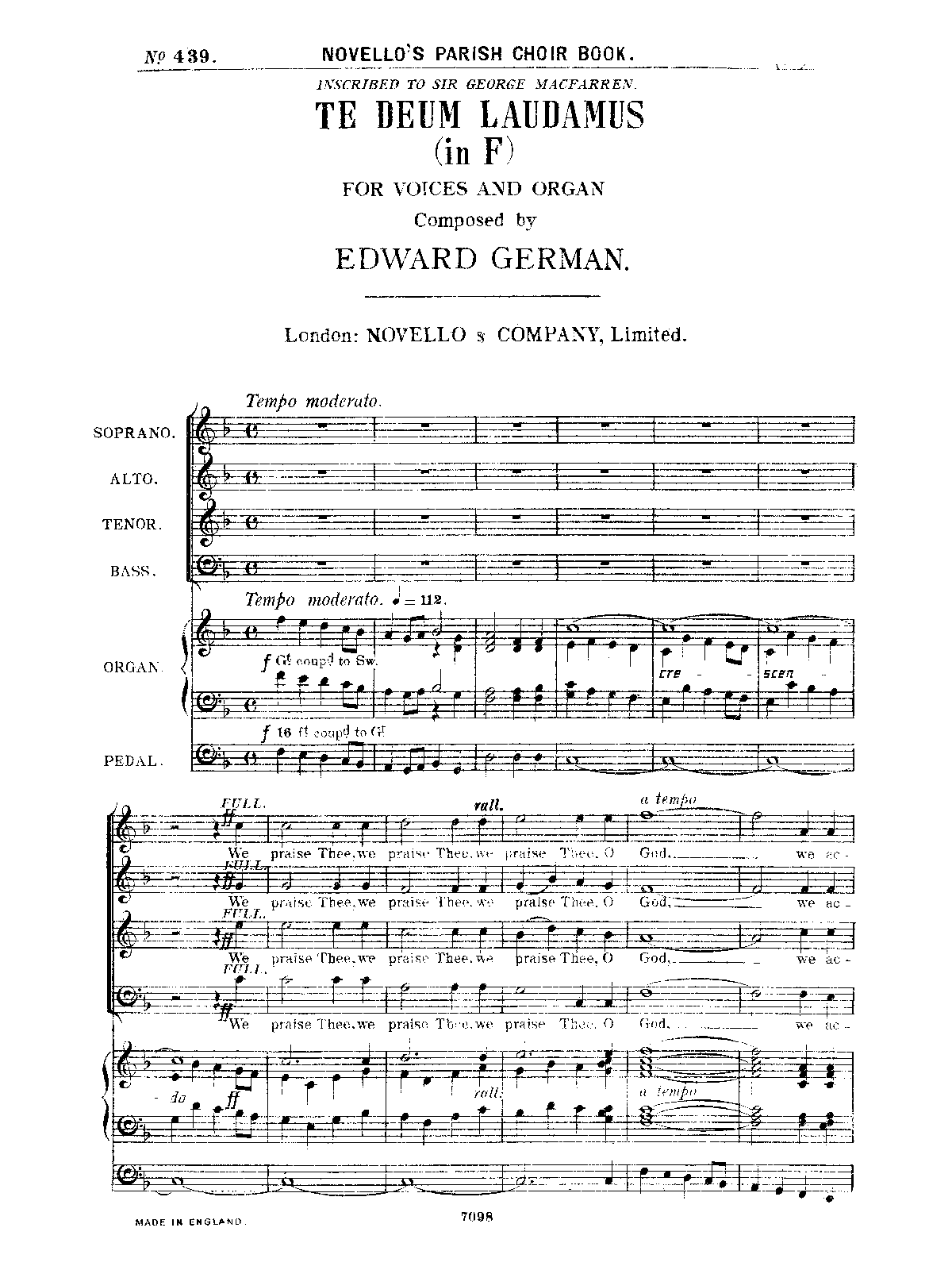 | Genre Categories | Te Deum; Religious works; For mixed chorus, organ; |