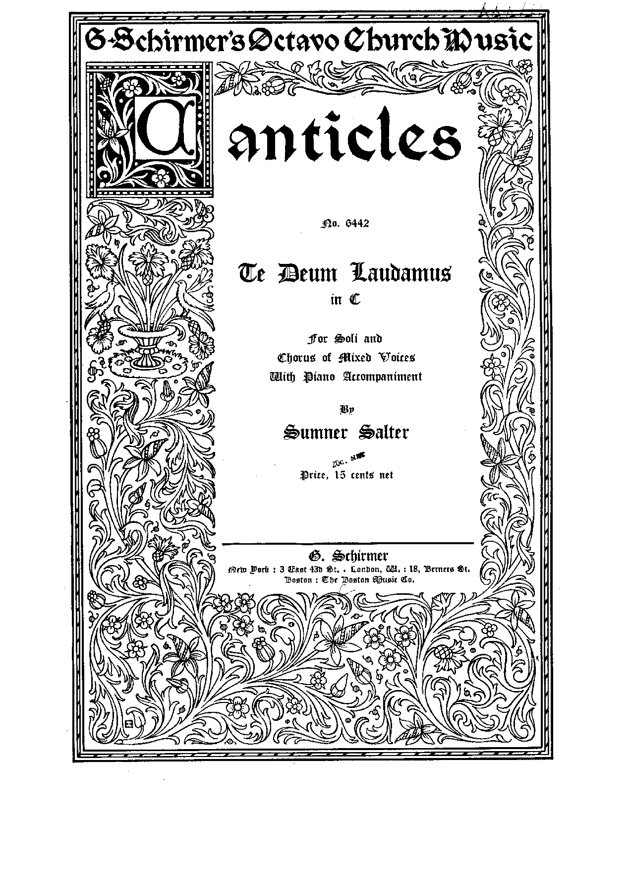 | Genre Categories | Te Deum; Religious works; For 6 voices, mixed chorus, organ; |